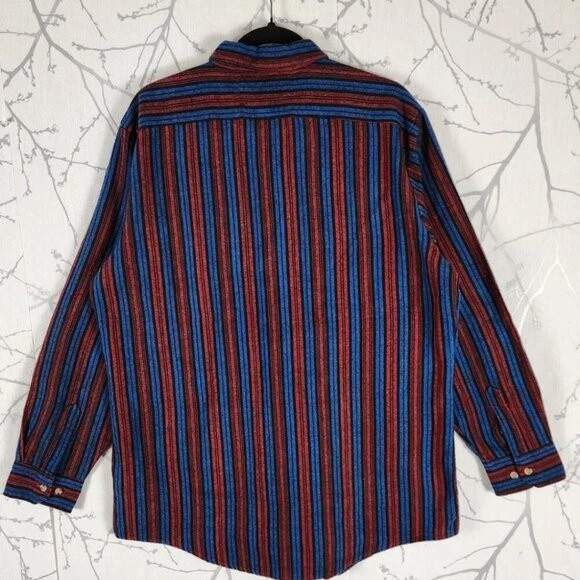 Mel Mat Blue Red Striped Heavyweight Cotton Flannel Shirt Men's L Chest: 24" Length: 33" Good Used Condition: no rips, marks or stains.