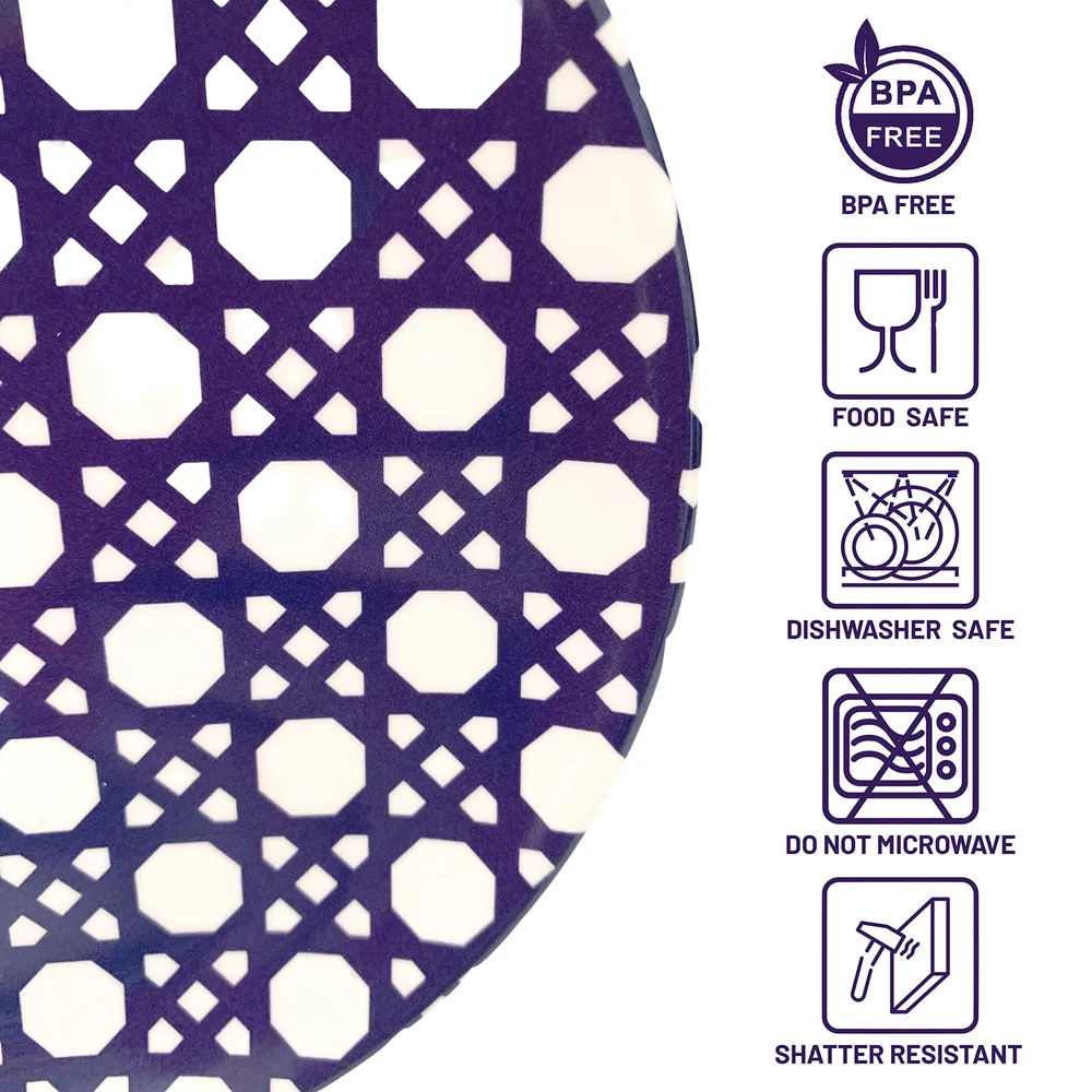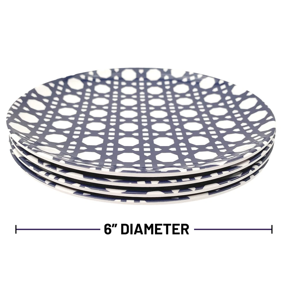Lovely modern plate set for appetizers, desserts and outdoor entertaining. Classic designs include a blue and white geometric pattern and a black and white plaid. These high quality 100% melamine appetizer plates are a sophisticated set for the home or as a gift. They’re perfect for summer patio dining or everyday use as they are dishwasher safe, food safe and unbreakable. At it is our goal to provide stylish party supplies for all of life’s celebrations, offering all the party necessities to bring your party vision to life no matter how big or small your celebration may be! 🍽 100% QUALITY MELAMINE DISHES: These melamine plastic dishes are the perfect small plates for appetizers. Our stylish, modern plates are the ideal outdoor dishes for patio entertaining - they'll quickly become the go-to summer plates for all your parties. And these colorful plates are durable enough to be your everyday dishes too! 💪 UNBREAKABLE PLATE SET: This versatile melamine dish set can be used in many ways - not only are they great outdoor plates, but they are fabulous as salad plates and pizza plates, and make adorable picnic plates. They're super practical as RV plates - they won't shatter like porcelain or ceramic! 🖤 MODERN PLATE SET: These lovely dish sets will complement any modern dinnerware set. The elegant design is perfectly suited to those who prefer a more sophisticated appetizer plate to add to their outdoor serving dishes. Can also be used as cocktail plates to step up your brunch decor! 🌱 BPA FREE PLATES: 100% food safe and BPA-free plate sets are better for the environment than a single-use plastic dinnerware set. 6 inches in diameter, this plate set for 4 is toxin-free, odor-free, shatter and scratch resistant. 💦 DISHWASHER SAFE PLATES: Melamine dinnerware sets are easy to care for - simply run them through the dishwasher after each use! Note: melamine plate set is not . Do not use in the microwave.