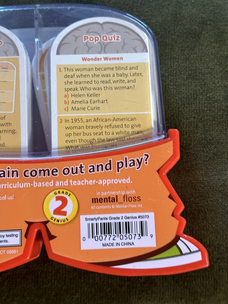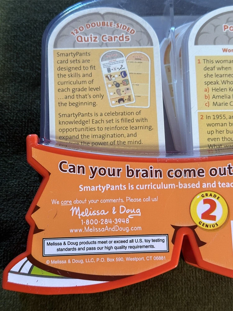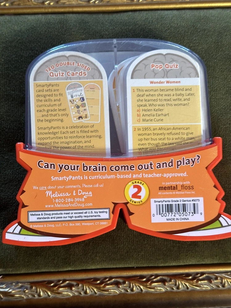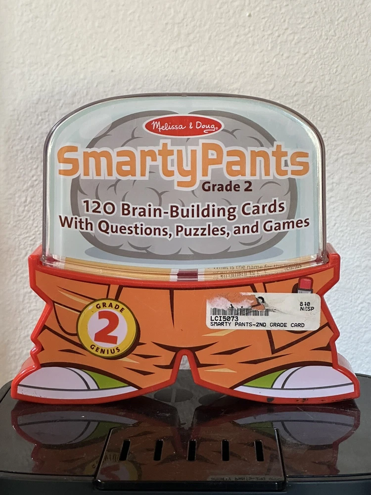Smarty pants Grade 2 Melissa and Doug. One side is open and one side is not. 60 cards on the opened side and assuming 60 on the other. Thanks for looking. Case shows some wear. Please see pictures.
