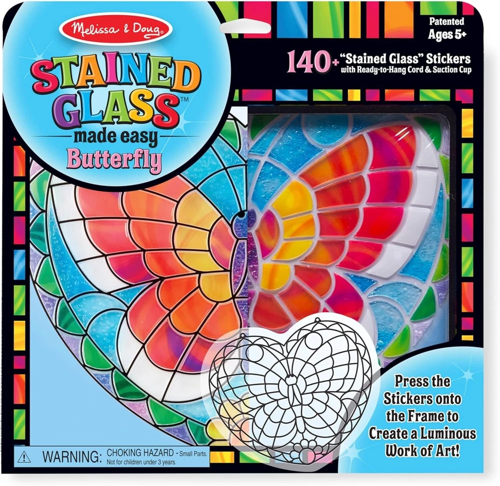 Melissa & Doug Stained Glass Made Easy Activity Kit: Butterfly Easy & Fun to Create: This exciting kit provides an easy way for kids to create their own beautiful stained glass art. With over 140 colorful stickers, children can simply peel and press the stickers onto the grooved frame to craft a stunning butterfly design. It’s a fun and creative activity for young artists! Perfect for Display: Once completed, this vibrant stained glass art piece makes a gorgeous display that’s perfect for any room. Hang it in a sunny window, and watch as the butterfly design shimmers and glows, creating a luminous effect that brings the room to life. Supports Skill Development: The Melissa & Doug Stained Glass Made Easy Activity Kit promotes the development of essential skills. As children work through this activity, they strengthen problem-solving abilities, fine motor skills, and hand-eye coordination, all while having fun. Ideal Gift for Ages 5 and Up: This kit makes a fantastic gift for kids ages 5 and up. It encourages hands-on, screen-free fun and provides hours of creative play. You can even add other kits from the Stained Glass Made Easy collection for more artistic fun! Trusted Brand for Childhood Play: For over 30 years, Melissa & Doug has been known for creating imaginative, high-quality toys that nurture creativity. Their products are recognized as the gold standard in childhood play by NBC News. 100% Happiness Guarantee: Melissa & Doug stands behind the quality of every product. If your child isn’t inspired, simply reach out, and they will make it right. Your satisfaction is their top priority.