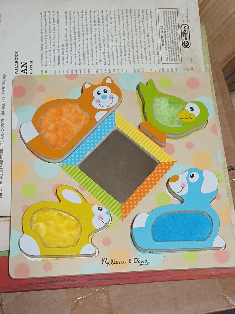 The product is a used Melissa & Doug wooden puzzle designed for early learning with a tactile peek-a-boo element featuring various pets. With less than 15 pieces, this puzzle is suitable for children aged 1-4 years. The high-quality wood material adds a touch of durability and charm to the toy, making it a great option for young children to engage in interactive play and develop problem-solving skills.
