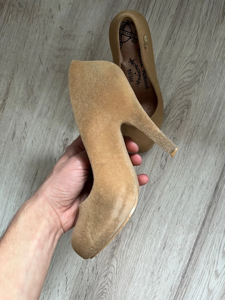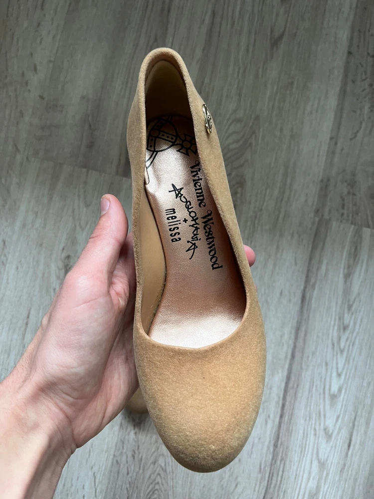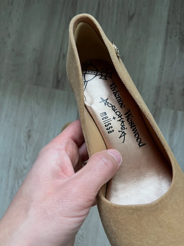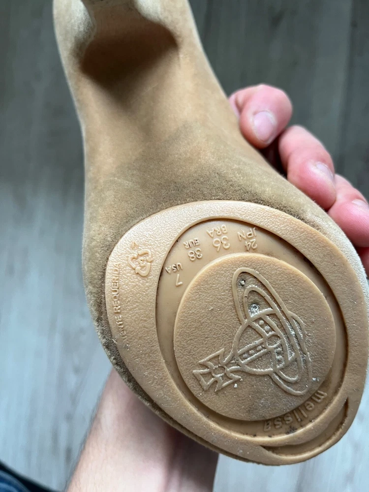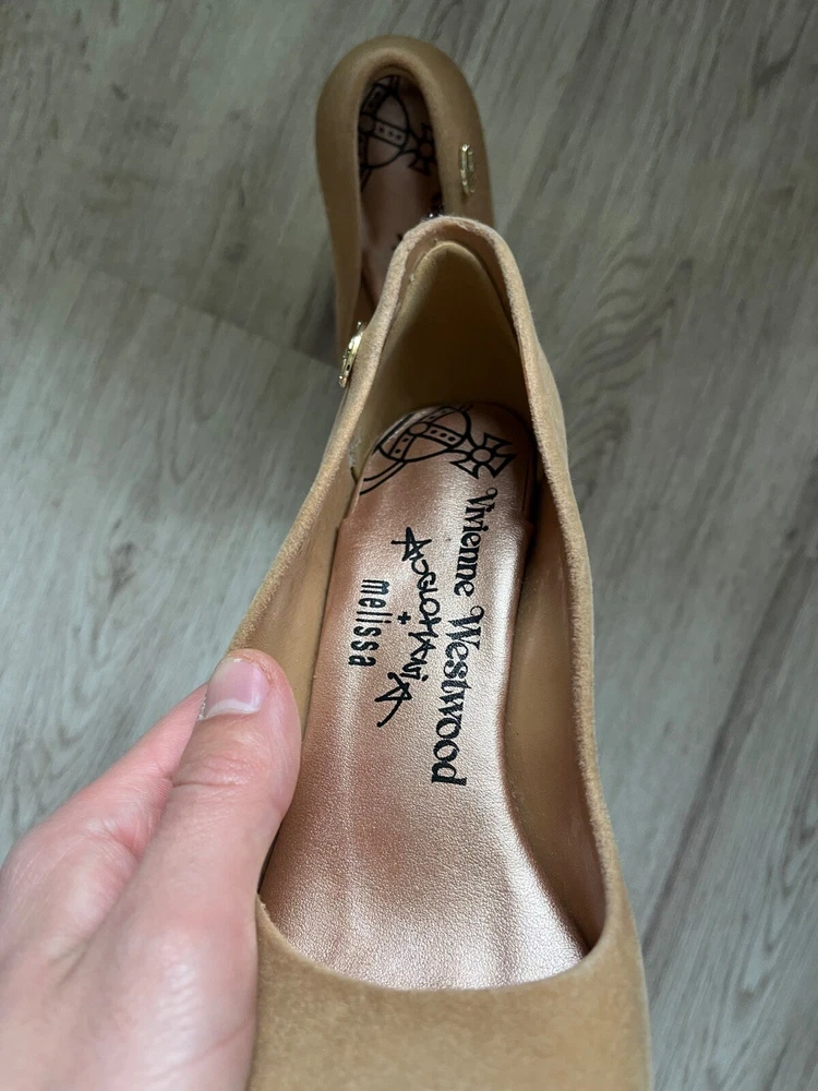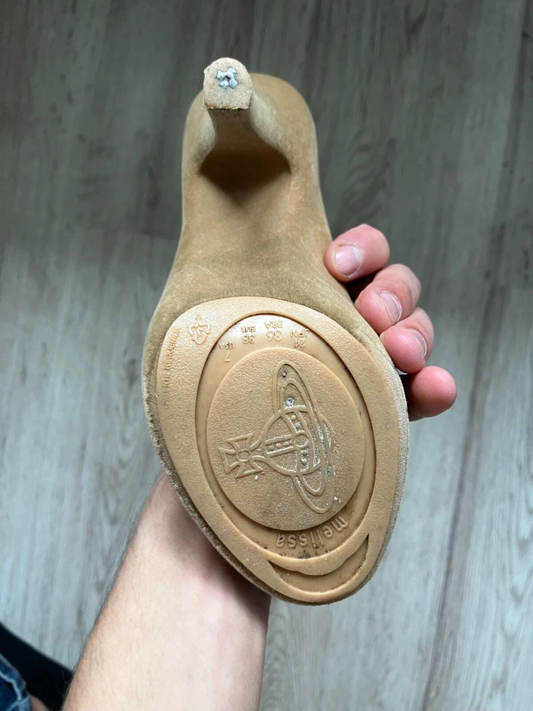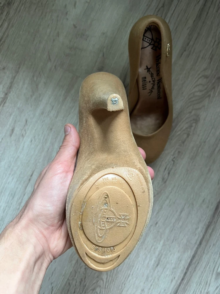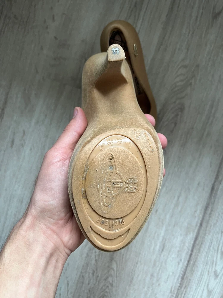 Melissa Vivienne Westwood velvet effect rubber heels , beige color US7 Used