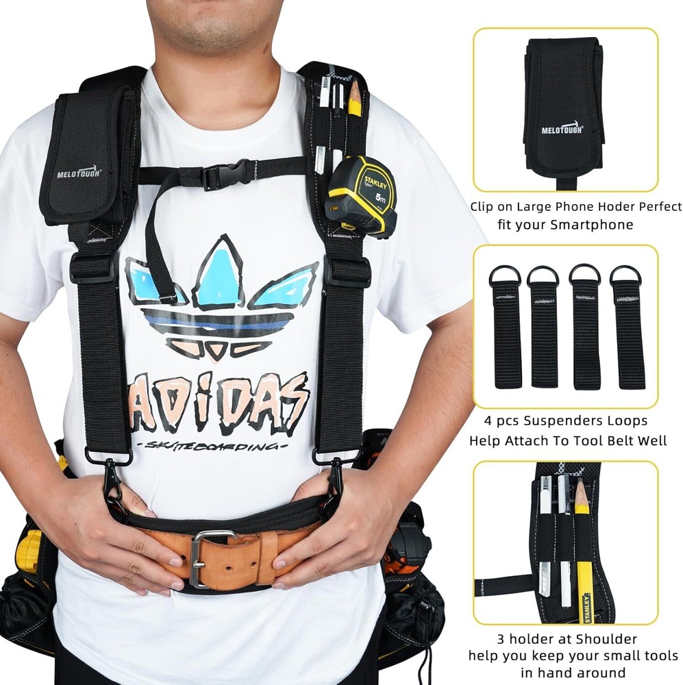 These suspenders are a game-changer for heavy-duty work! The padded straps are super comfy and don’t dig in, while the breathable mesh keeps you cool. The sturdy nylon webbing and solid stitching make them built to last, and the adjustable hooks fit any tool belt. Love the detachable phone holder—so handy! Perfect for construction, farming, or carpentry. Way better than cheaper brands—worth every penny!