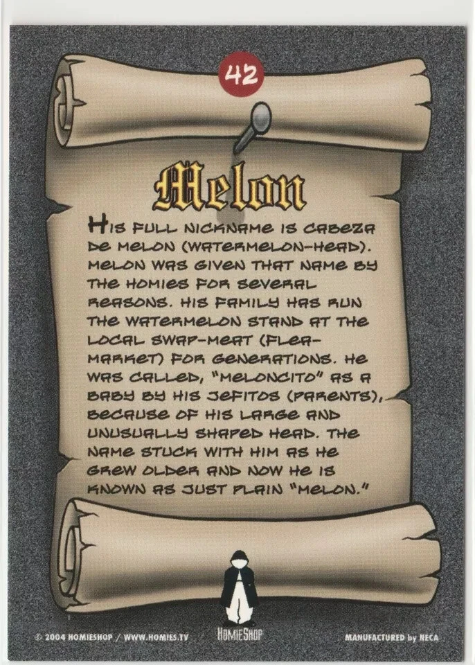 Melon #42 Homies Swap Cards 2004 NECA Lowrider Chicano Barrio East LA personal stock photos centering of cards may vary compared to listed images