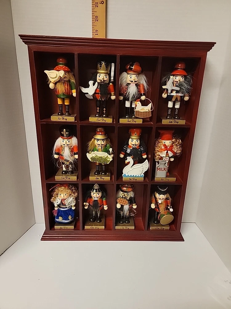 Celebrate the holiday season with this beautiful Member's Mark 12 Days of Christmas Nutcracker Set Display Shelf. Crafted from high-quality wood, this medium-sized rectangle shelf features a classicism style that adds a touch of elegance to any Christmas decor. The shelf is designed to hold 12 nutcracker ornaments, each representing a different day of the 12 Days of Christmas. This vintage nutcracker set is perfect for collectors and enthusiasts alike, with its timeless design and intricate details. Whether you're looking to add to your collection or simply want to personalize your holiday decor, this nutcracker set is sure to impress. So why wait? Order yours today and bring the magic of Christmas to life!