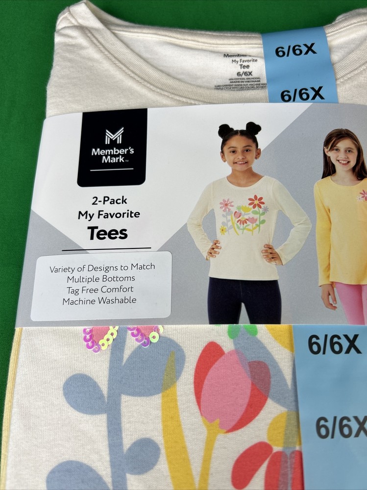 Members Mark 2-Pack Floral Favorite Tees Size 6/6X for Girls