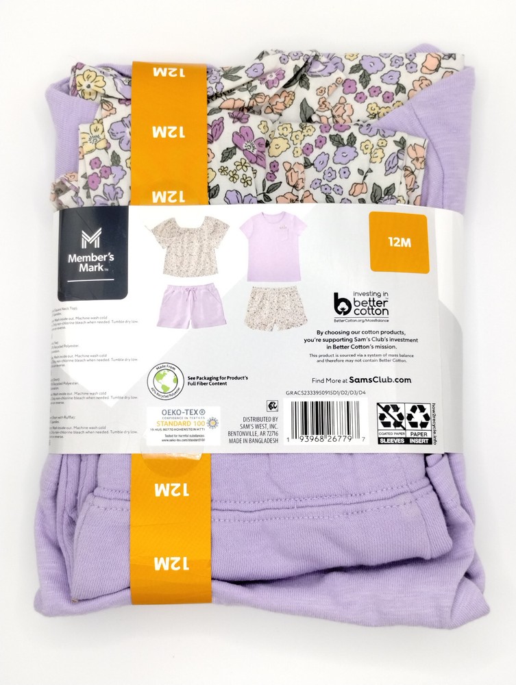 Members Mark 4 Piece Playwear Set Size 12 Months, Floral Pattern, Purple, Beige, New Includes 2 shirts and 2 shorts, mix & match, machine washable, adorable. We want a positive experience for all of our customers. Please read the description thoroughly and review the photos as they are an active part of the description. If you feel anything may be incorrect, please don’t hesitate to contact us at any point. If you have any questions, please feel free to contact us anytime. Please note that the color of the item in the pictures may vary from the actual item due to camera settings, lighting, and your device’s display among other factors. All items are shipped via economy shipping the next business day after payment is received. All items are stored in a clean, smoke free, and pet free environment. We are happy to combine shipping on items that are purchased on the same day. THANK YOU FOR SHOPPING!!! 2