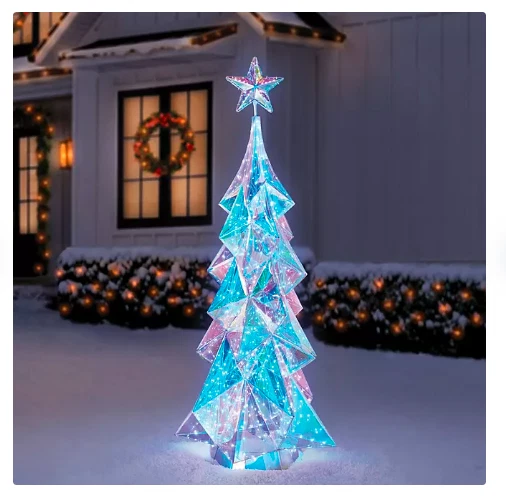 Illuminate Your Holiday Season Light up your holiday season with the Member’s Mark™ 76" Pre-Lit Prismatic Tree. This unique tree, features an innovative prismatic effect, created with the help of 470 cool white LED lights with a twinkle effect. Ideal for both indoor and outdoor use, this tree is sure to be the star of your holiday decor. Flexible and Convenient Design The Prismatic Tree comes with four yard stakes for stability, making it perfect for outdoor display. Alternatively, place it on your porch or in your entryway for a festive welcome. A 5-foot lead cord provides the flexibility to plug it in anywhere, while the cool, energy-efficient LED lights ensure a bright and sparkling display. Long-Lasting and Sustainable With an average bulb life of 25,000 hours, this Prismatic Tree shines brightly for many holiday seasons to come. This long life is not only convenient, but also environmentally friendly, resulting in fewer resources used over time. Plus, the packaging for this Prismatic Tree is recyclable, adding an extra touch of sustainability to your holiday decorations. Complete Your Holiday Decor The Member’s Mark Prismatic Holiday Décor Collection includes a variety of items to complement your 76" Pre-Lit Prismatic Tree. Choose from a 6.3’ Prismatic Tree, 6’ Prismatic Snowman, 8’ Arch with Prismatic Snowflakes, a set of 2 Prismatic Ornaments, a 3-Piece Prismatic Deer Family, a set of 3 Prismatic Snowflakes, and a 6.5’ Prismatic Angel. With these beautiful pieces, you can create a cohesive and dazzling holiday display. A Joyful Addition to Your Holiday Season The Member’s Mark 76" Pre-Lit Prismatic Tree is sure to bring joy and smiles to your loved ones throughout the holiday season. Its unique design and bright, twinkling lights make it a festive and delightful addition to any holiday decor.