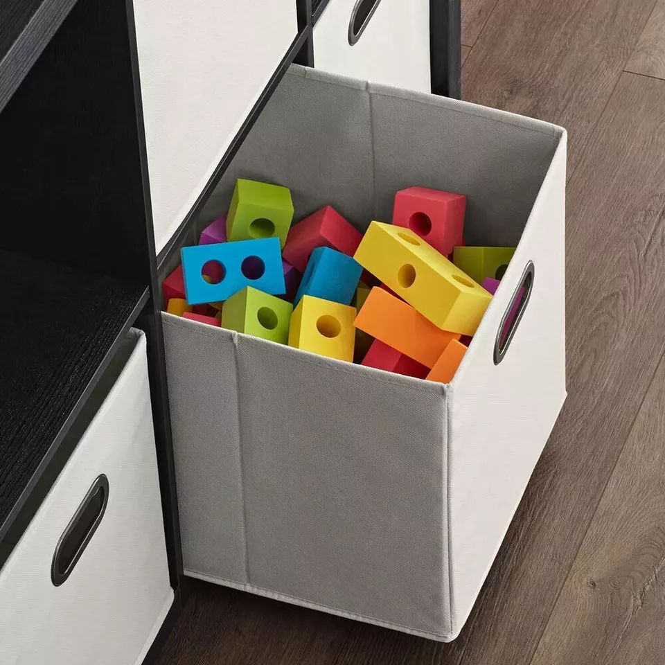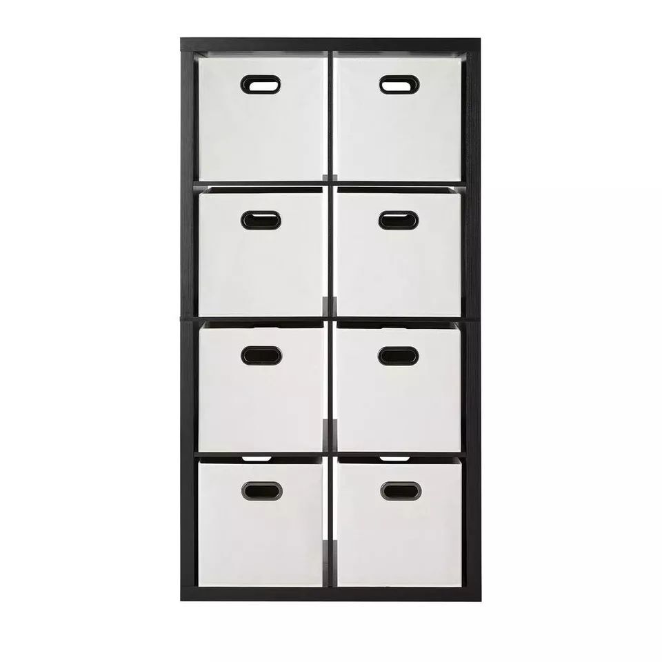 Members Mark 8 Cube Room Organizer with Removable Storage Bins Includes eight fabric storage bins Ideal for use as a room divider, storage shelves or bookcase Use vertically or horizontally Compartment dimensions are 13.2" W x 15.2" D x 13.15" H Anti-tipping hardware secures unit safely to wall Easy assembly