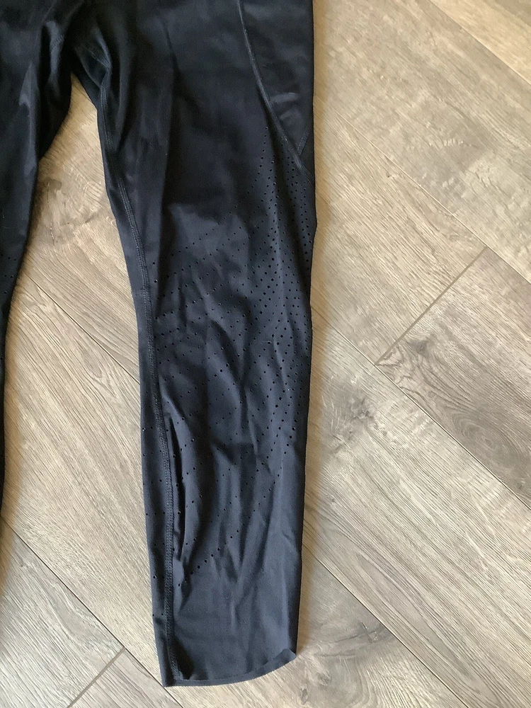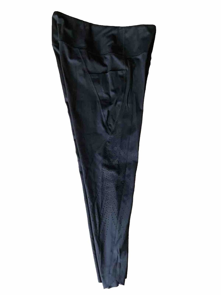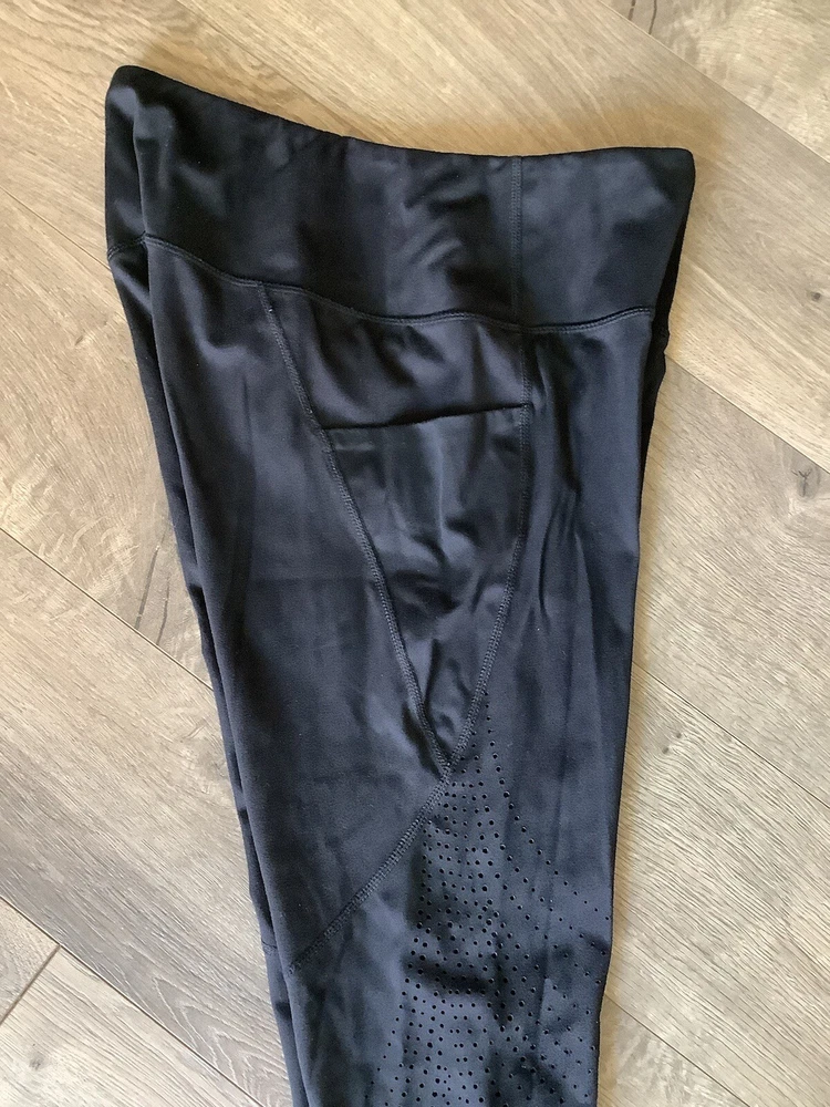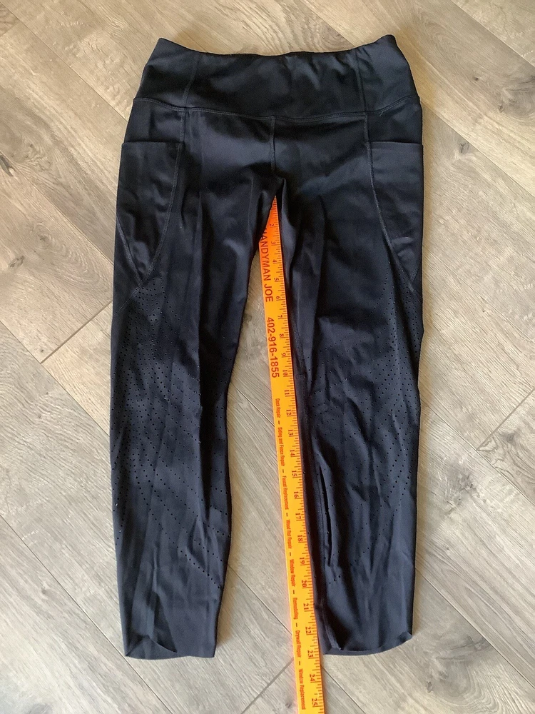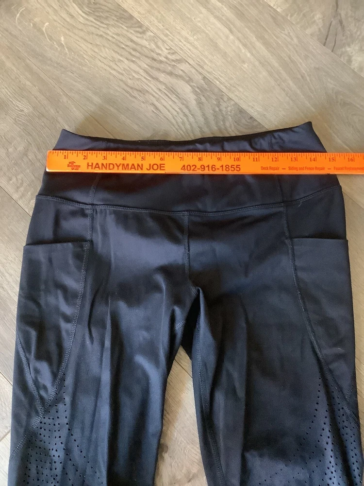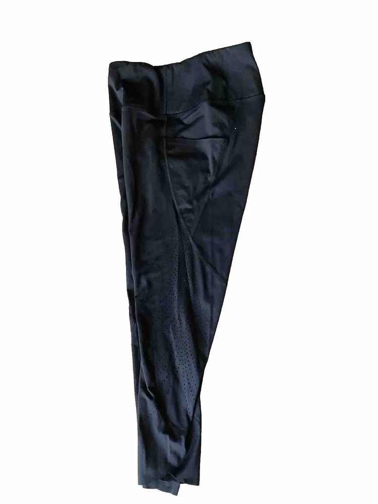 Elevate your activewear game with these Members Only black capri ankle leggings in size L. These athletic leggings are made of a comfortable blend of nylon and spandex fabric that is easy to care for and breathable. The elastic waist, tapered leg style, and 23-inch inseam provide a perfect fit for everyday wear or running and jogging. Featuring a media pocket and multiple other pockets, these leggings are perfect for carrying your essentials on the go. The compression area targets both the abdomen and legs, providing support for an active lifestyle. The solid black design is perfect for both casual and activewear occasions. Pet free and smoke free household