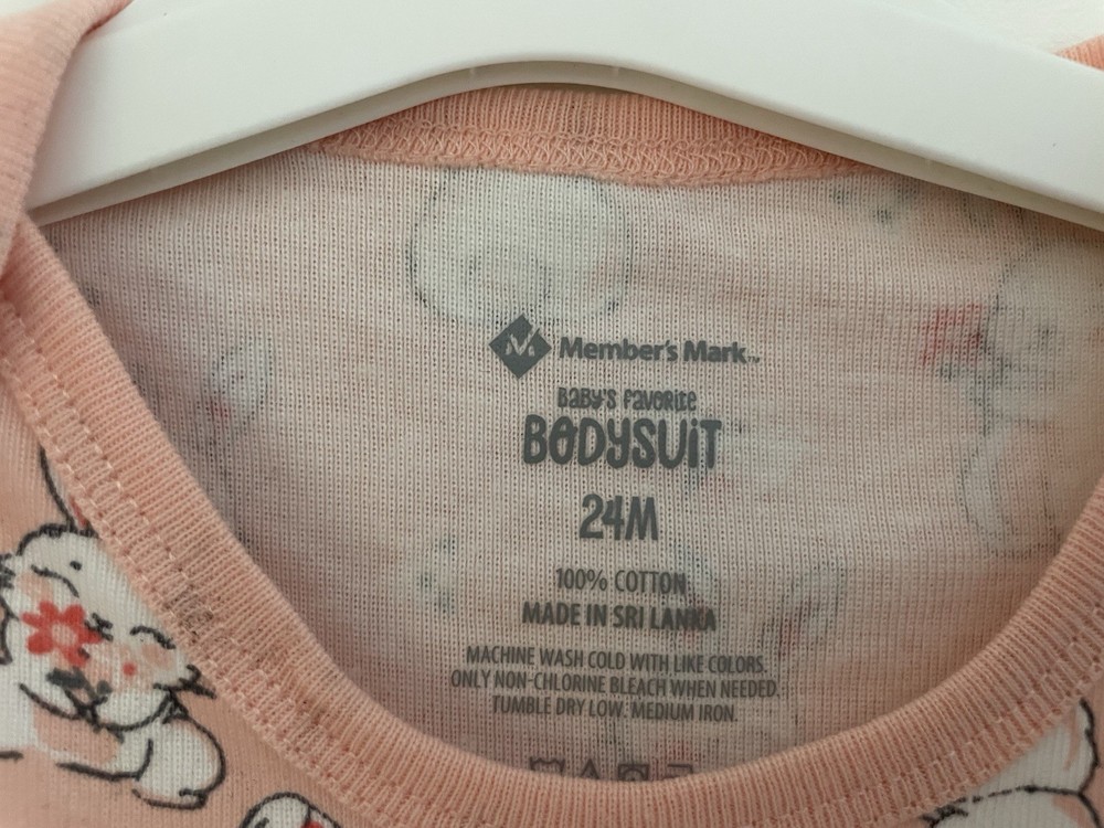 Type: One-Piece Style: Bodysuit Closure: Snap Size: 24 Months Occasion: Casual Number of Pieces: 1 Piece Country of Origin: Sri Lanka Theme: Animals, Bunny, Flower Season: Fall, Spring, Summer Brand: Member's Mark Sleeve Length: Short Sleeve Material: 100% Cotton Accents: Ruffle Color: Pink Garment Care: Machine Washable Seller Notes: “In very good condition. Free of rips or stains.” Features: Comfort, Easy Care, Lightweight, Stretch Set Includes: Bodysuit Department: Girls Pattern: Animal Print