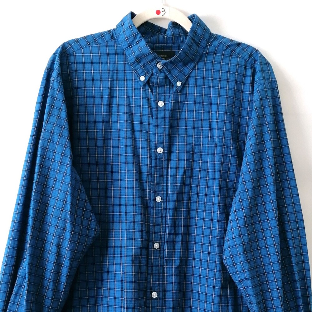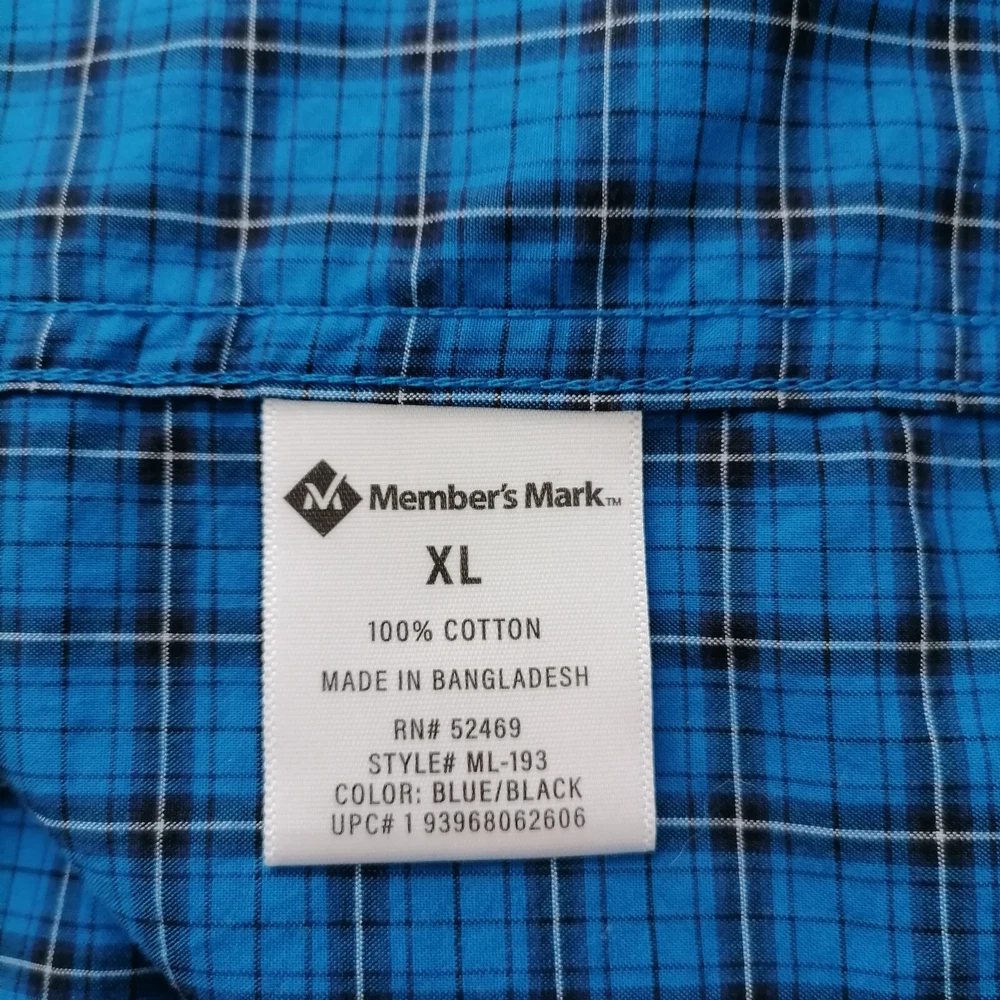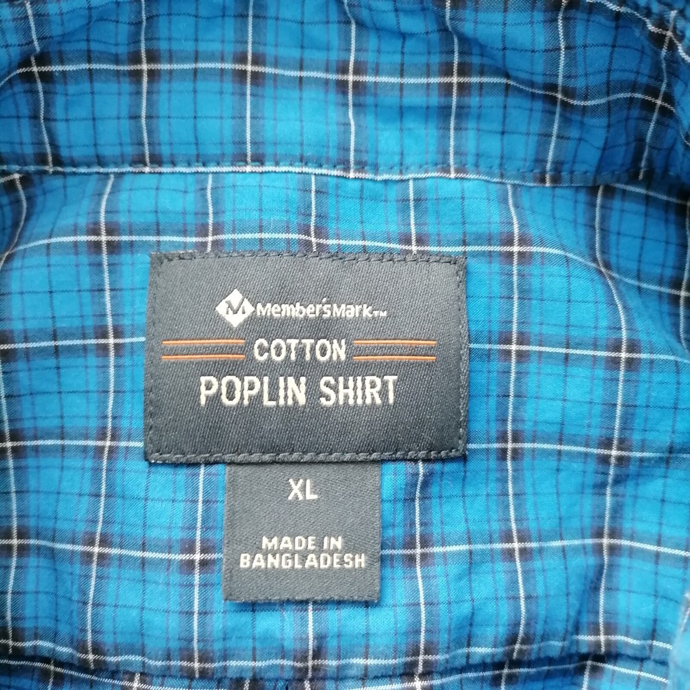 Sleeve Length: Long Sleeve Theme: Classic Vintage: No Features: All Seasons, Pockets Country/Region of Manufacture: Bangladesh Size: XL Closure: Button Seller Notes: “Pre-Owned In Good Condition.” Department: Men Brand: Member's Mark Collar Style: Button-Down Type: Button-Up Handmade: No Occasion: Casual Material: Cotton Personalize: No Season: Fall, Spring, Summer, Winter SKU: 140-3,C Size Type: Regular Color: Blue Fit: Regular Neckline: Collared Accents: Button Garment Care: Machine Washable Chest Size: 52 in Pattern: Check