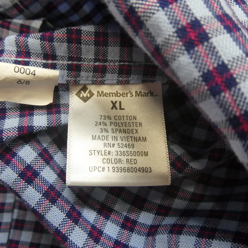 Up for sale is a Members Mark Mens Shirt Blue/Red Plaid Long Sleeve Button Up Stretch Size: XL Good used condition I ship items out EVERY DAY so EXPECT a QUICK delivery! Please feel free to ask any questions you may have I answer most questions instantly!