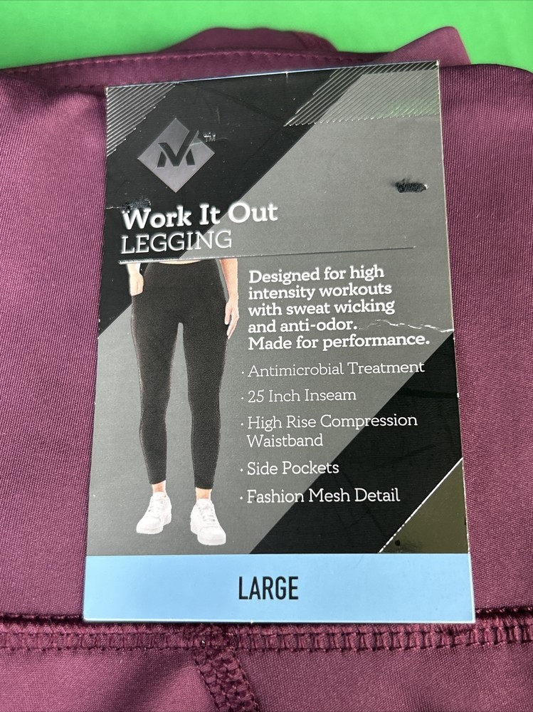NEW ITEM !!! Will be shipped in a secure package. Buy with confidence, hassle free return policy. Members Mark Working It Out Leggings BURGUNDY LARGE Antimicrobial Treatment 25 Inch Inseam Side Pockets Shipping Shipping is FREE to all addresses in the lower 48 states. Our stock all ships from our US-based warehouse. Shipped via USPS or FED-EX(depending on location and package weight) Unless stated otherwise, all orders will ship within 1 business day of your payment being processed. Check our feedback to see the great reviews of FAST shipping we offer. PAY SAFE: PAYPAL PAYMENT IS ACCEPTED Returns We offer a 30-day return policy for our products. We are not responsible for any purchase after this 30-day period. If you have any questions please contact us through "Ask seller a question" link. We will respond within 1 business day or less. All returns must be done within 30 days of the date of purchase. Please note that we cannot give refunds after the 30 day limit has expired. When sending in a return, please note that it can take up to 7 business days for the return to be processed. We do our best to process as quickly as possible. ELECTRONIC PRODUCTS Our electronic products are manufactured according to the specifications of the US Electrical Standards and Codes. If you purchase these products to use in a country outside of the United States we cannot guarantee they will work properly. We assume no responsibility if the items malfunction or cause an accident because one tried to use the product with foreign electrical standards.