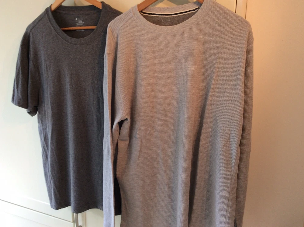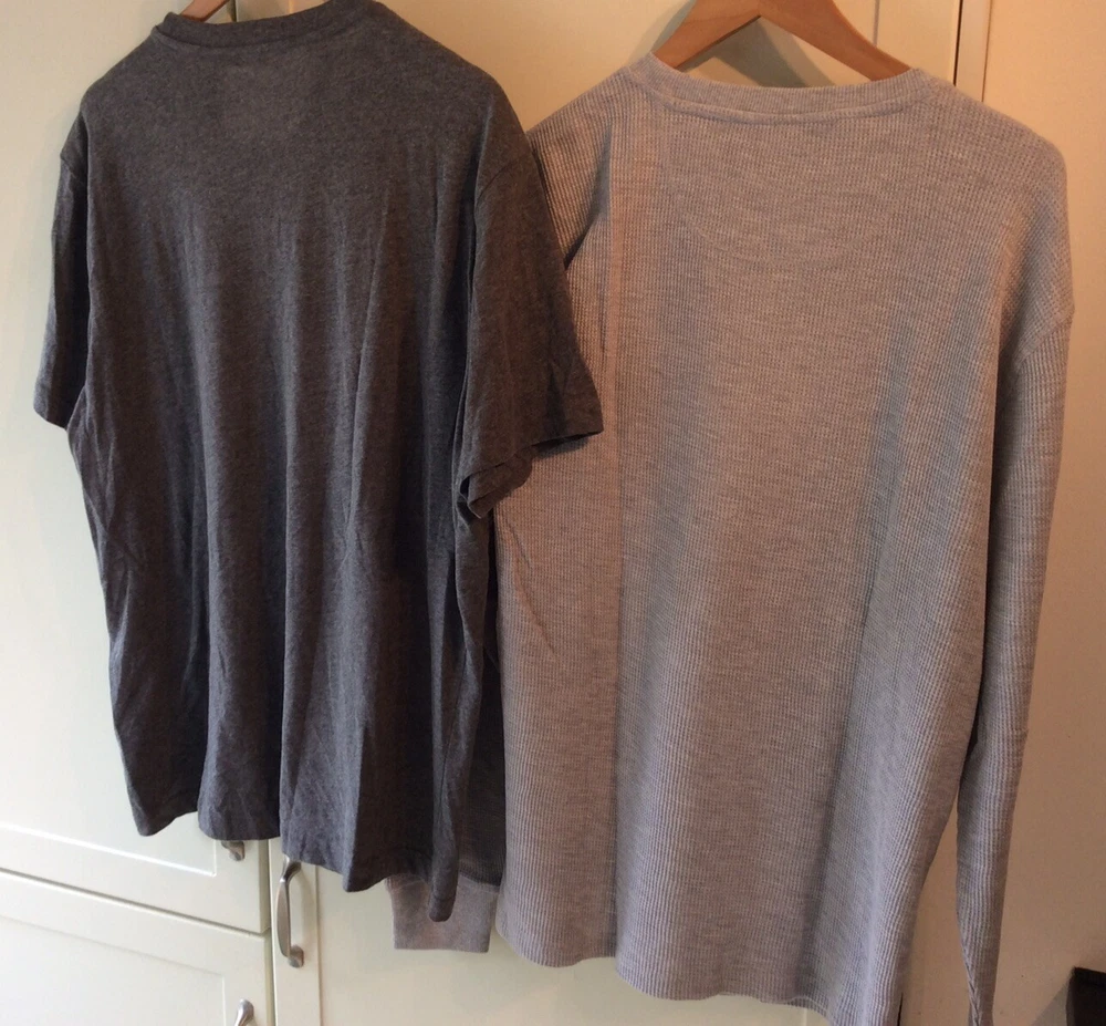 Members Mark Crew Neck Tee thermal Bundle Large Grey Short Sleeve Used. 12 pictures showing all measurements Please note the size pictures We recommend any item is cleaned before use TWO ITEM BUNDLE, ONE POSTAGE COST. HOW MUCH NEW ?