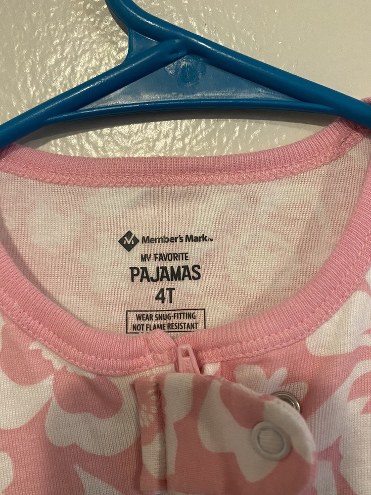 Members Mark Girls 4T Pink 1/4 Sleeve Full-Zip Footed Pajamas