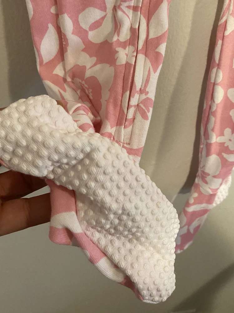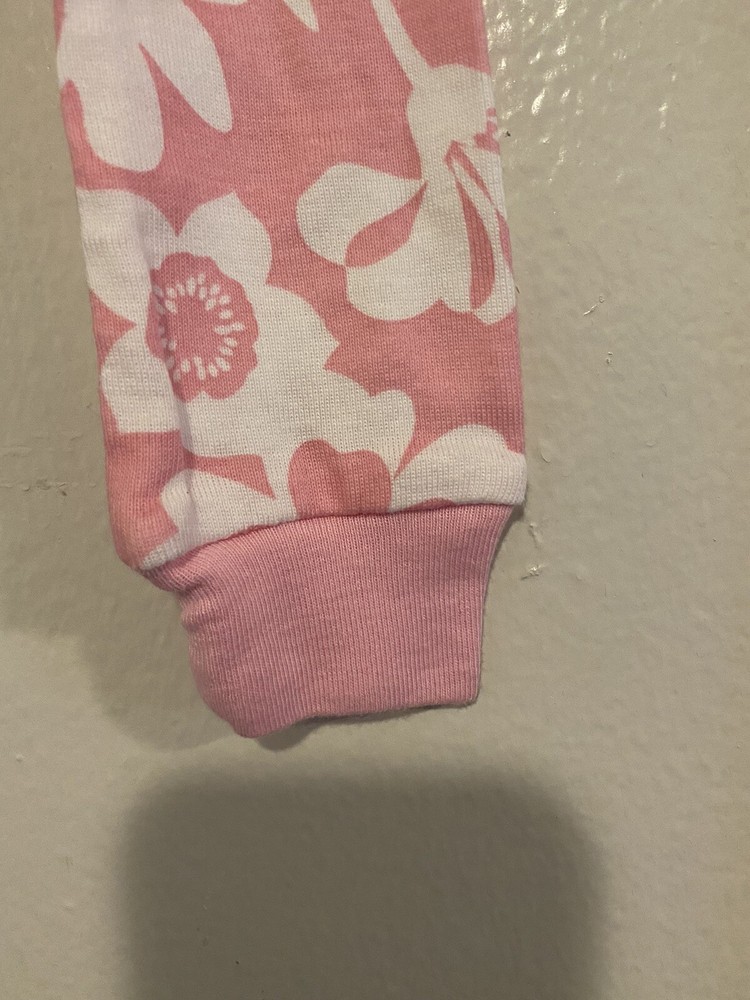 This NWOT pink long pants set with a full zipper closure is made of 100% cotton knit fabric, which makes it soft and comfortable to wear. The onsie has built in feet ribbed for slip resistance. Arm to arm is 10” and length is 35”
