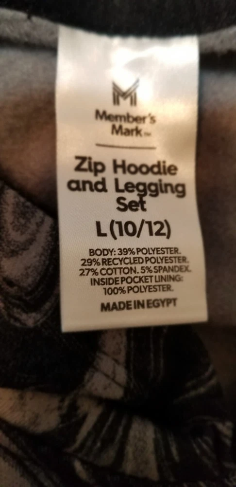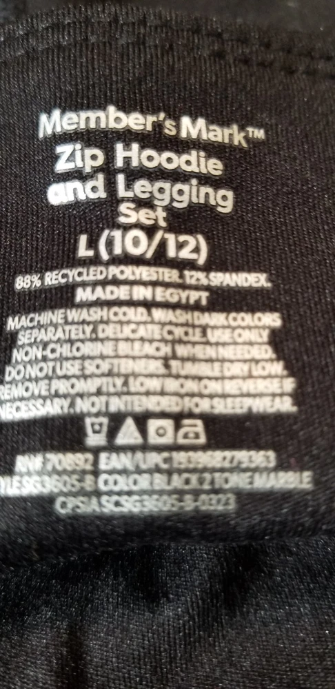 Member's Mark, Girls 2 Piece Zip Hoodie & Legging Set, Black Gray Color, Size Large (10/12), 1/4 zipper, pullover, long sleeve with thumb opening, pouch pocket in front Lying flatunderarm seam to underarm seam (chest area) - 19 1/2 inches Sleeve length down the top - 20 inches Length underarm to bottom - 8 1/2 inches Length down the center back - 18 1/2 inches My home is a non-smoking home. I will combine shipping of multiplepurchases, be sure to send me an email in case I miss it. Pay for theitems and I will reimburse your account. Questions, be sure to askprior to your purchase. Thank you for looking and have a great day!