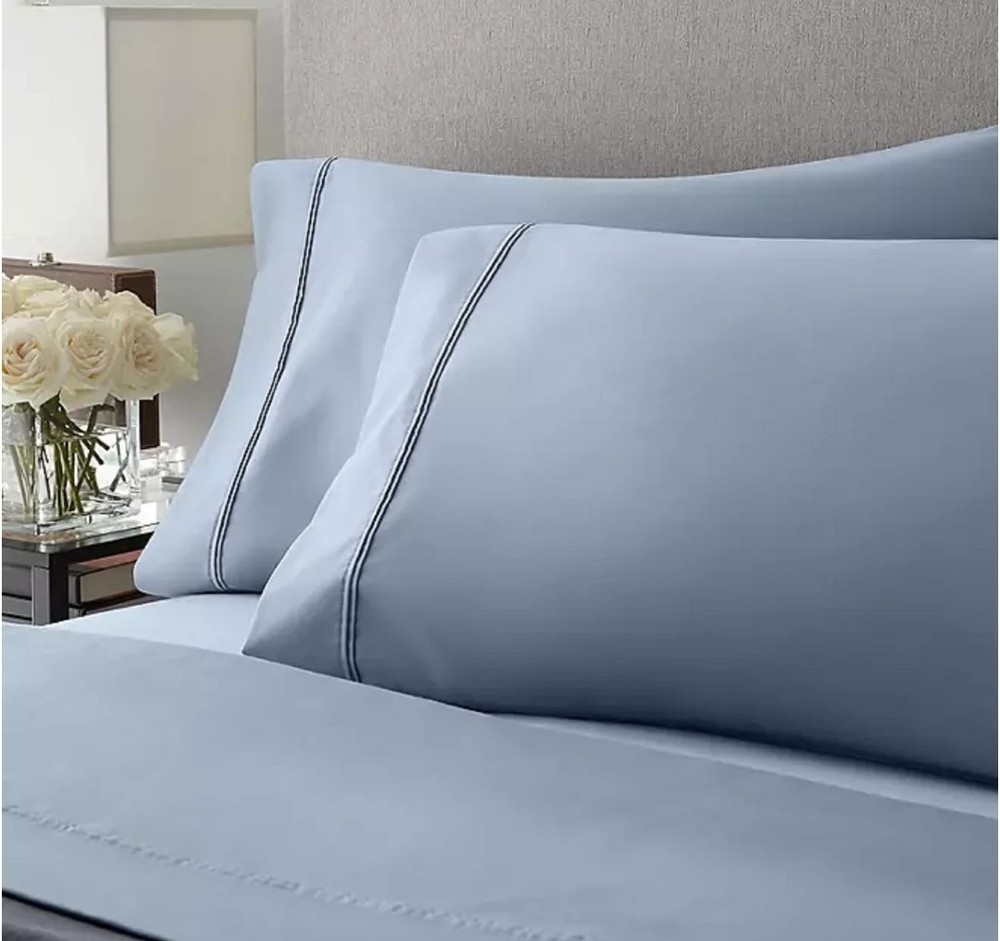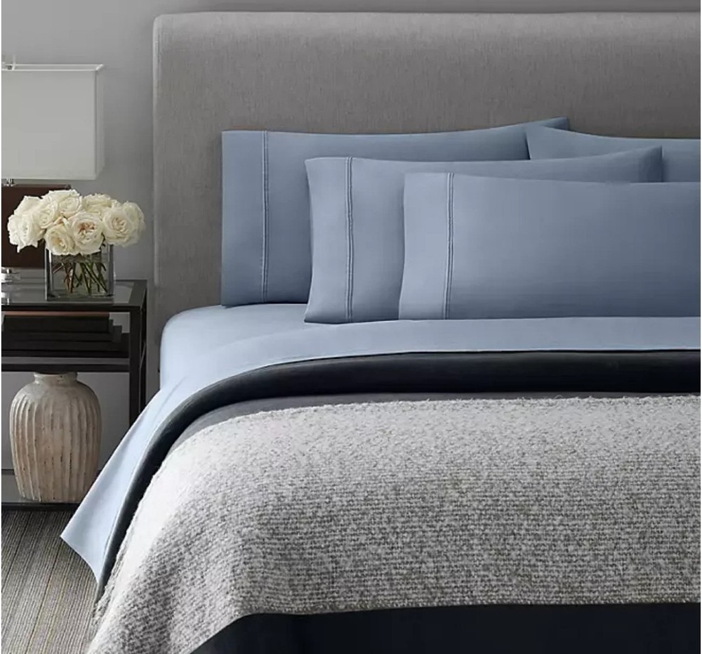 The Member's Mark Hotel Premier Egyptian Cotton 700TC Sheet Set in Light Blue is a luxurious addition to any bedroom. Made of high-quality Egyptian cotton, these wrinkle-free sheets feature a solid/PLAIN design and a deep pocket fitted sheet for a comfortable fit. The set includes a Cal King size rectangular sheet set with a thread count of 700, perfect for creating a relaxing and stylish environment in your home. Ideal for those seeking ultra soft and wrinkle-free bedding, this Hotel Premier Collection sheet set is sure to elevate your bedroom decor.