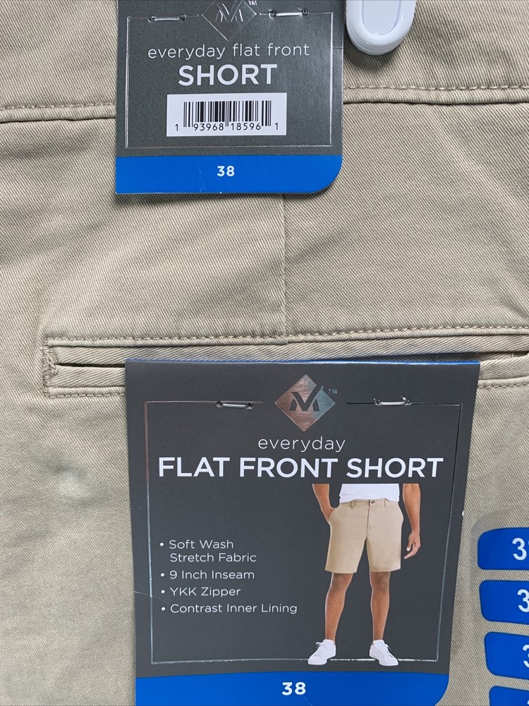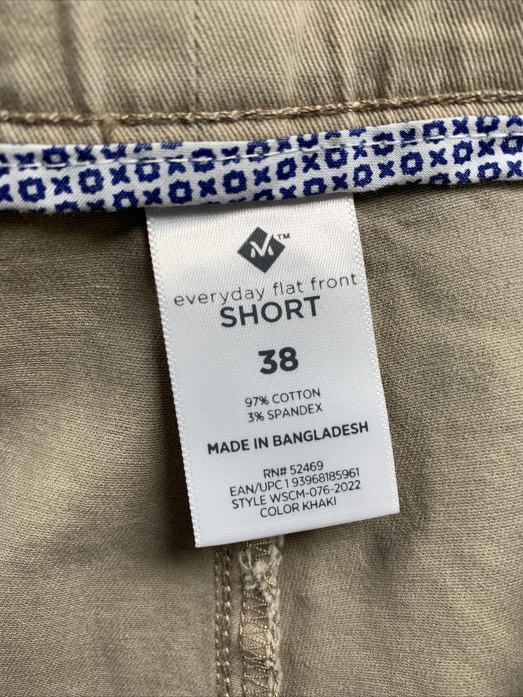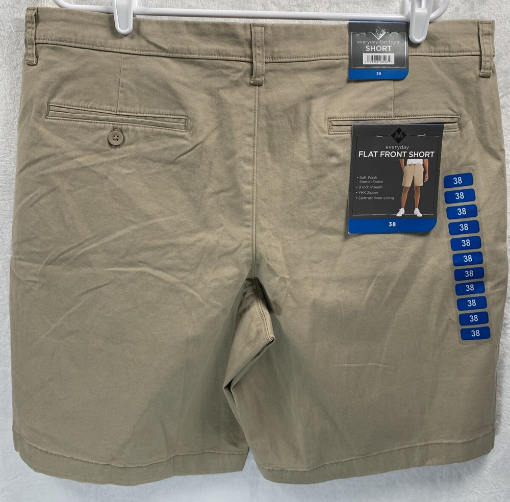 Members Mark Everyday Flat Front Khaki Shorts with Pockets SIZE 38 NWT *Soft Wash Stretch Fabric *9 in. Inseam *YKK Zipper *Contrast Inner Lining