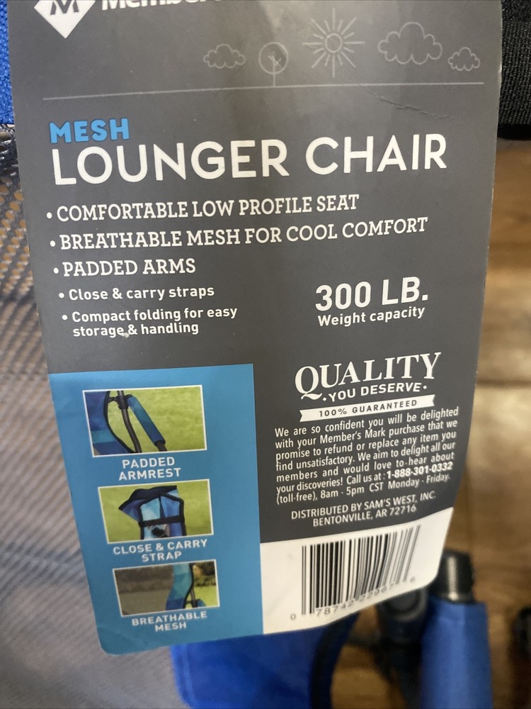 Members Mark Low Profile Lounger Chair 2pc Light Use. See photos for more item details. This is very low to floor so be sure you are able to use and get up easily. This does not show much signs of use. Came to us from a major club store. Any questions just contact us. PLEASE NOTE PHOTOS EXACT ITEM FOR SALE.