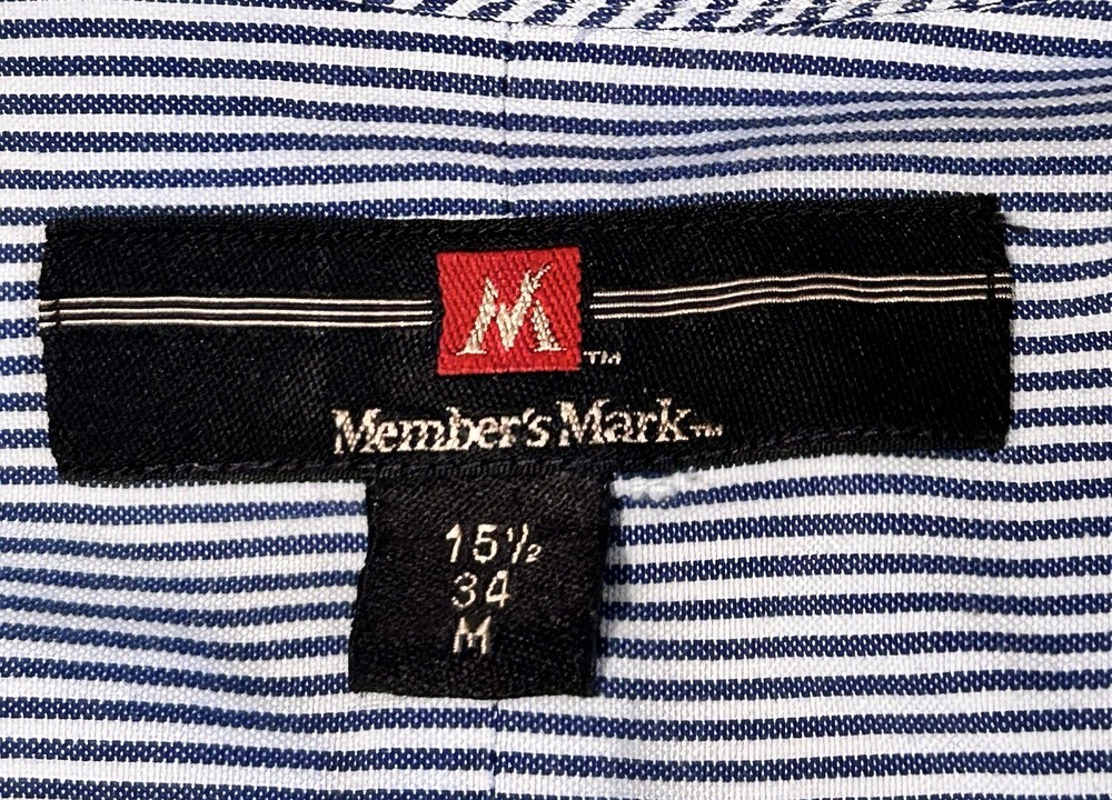 This Members Mark dress shirt for men is a stylish addition to any wardrobe. With a blue and white striped pattern, this shirt is perfect for those who love a colorful theme. It features long sleeves and a button-up design, making it a great choice for any formal occasion. The shirt is available in size M, with a size type of regular, and a sleeve length of long. Additionally, it is part of the clothing, shoes & accessories category, specifically the men's clothing section, and falls under the dress shirts subcategory. Don't miss out on this versatile shirt for your wardrobe!