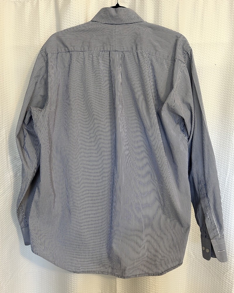 This dress shirt is a fantastic find—comfortable, well-fitting, and stylish. The blue and white stripes add a classic touch, perfect for work or formal events. The fabric feels great, and the regular fit is just right. Highly recommend for anyone needing a sharp, reliable shirt!