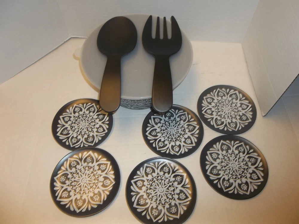 10" Bowl w/ Lid. 6-5 3/4" Plates and Large spoon fork salad serving Most of the items I sell are purchased at shops/garage sales/etc. Unless stated new, they are pre-owned items. I cannot guarantee items I sell are from smoke/pet free homes originally. I can only say that once I have them, they are in a non smoking/pet environment. So please keep that in mind when bidding/purchasing. I do combine shipping based on the weight of the combined items. If you have any problems please email me before leaving feedback. I do accept returns and will give a full refund provided item returns in the condition it left. Buyer pays return shipping. Feel free to check out my store for more great items. I usually ship within 1 day of cleared payment. Thanks for looking