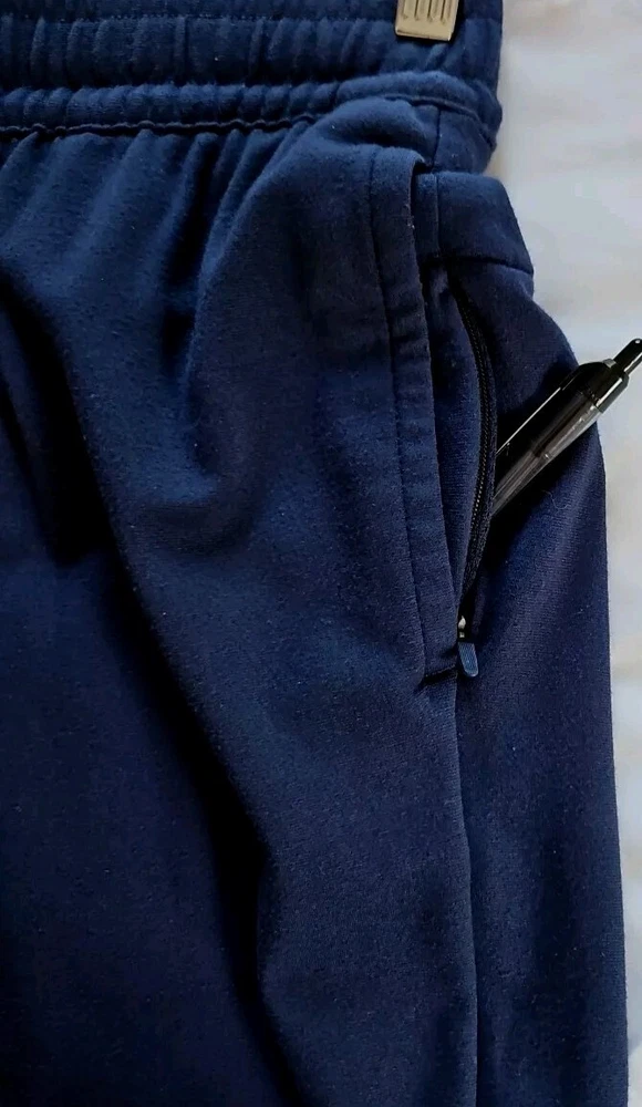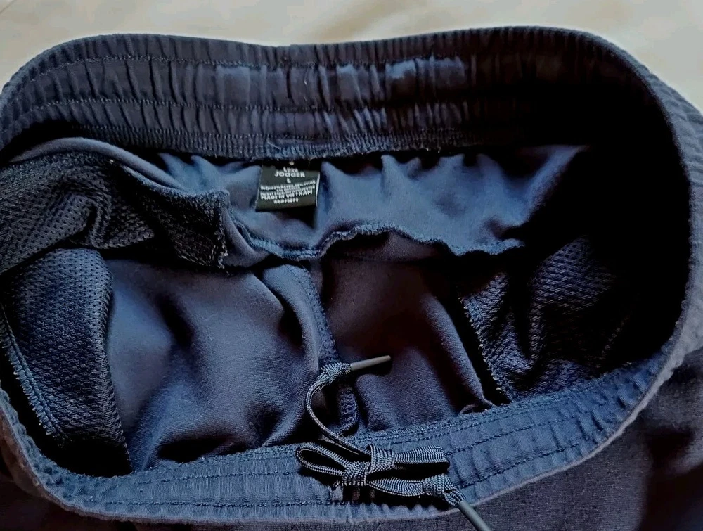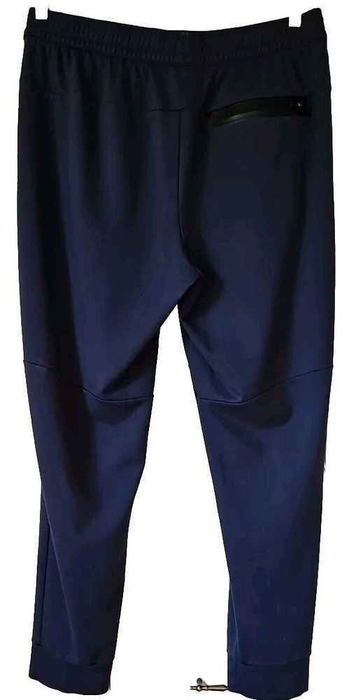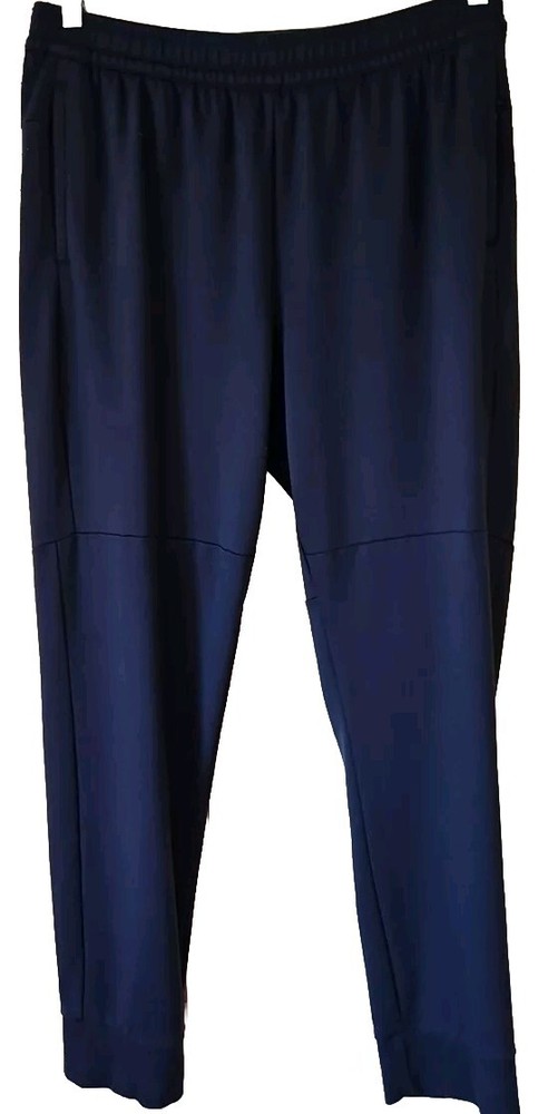 Elevate your activewear game with these stylish and comfortable jogger pants from Member's Mark. Featuring a drawstring closure and elastic waist, these pants provide a secure and comfortable fit for any activity. The tapered leg style and blended fabric make these pants perfect for all seasons, whether you're hitting the gym, going for a walk, or running and jogging. These pants come in a solid blue color and are made of 30% nylon, 4% spandex, and 66% rayon, making them easy to care for and machine washable. The pants also feature zippered security pockets and are perfect for gym and training, as well as other athletic activities. Available in size large, these luxury jogger pants are a must-have for any active man's wardrobe. Approximate Flat Lay Measurements: Waist: 16.5" Hips: 20" Waist to Hem: 38" Rise: 12" Inseam: 27" Ankle Opening: 5.25"