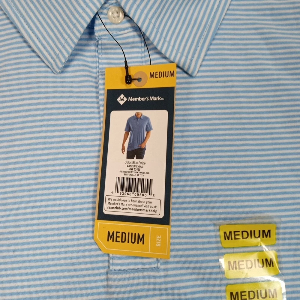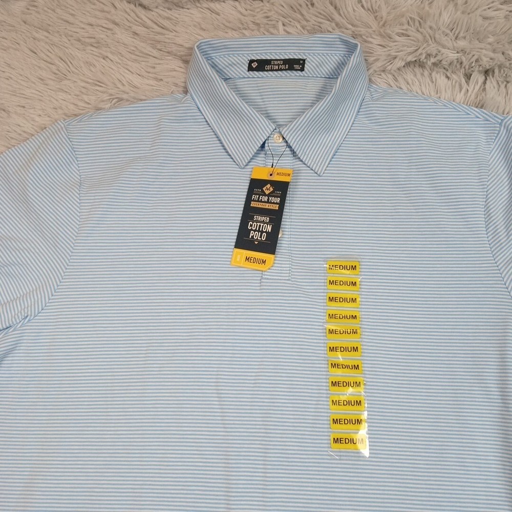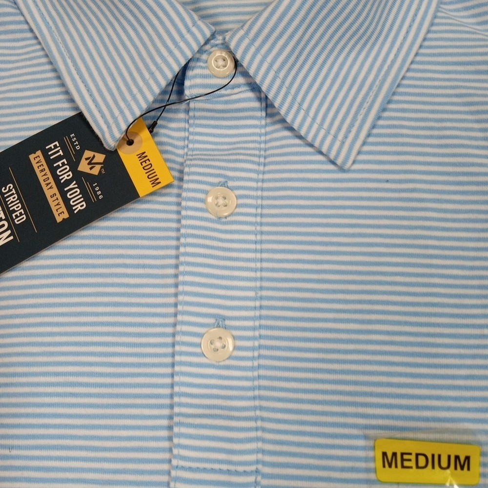 Members Mark Mens Polo Shirt Blue M Buttons Striped Golf Lightweight Comfort NEW New with tags. Please review photos for measurements and condition. Item will be shipped within one business day. We ship items daily Monday-Friday. * Product color may vary slightly due to photographic lighting or your monitor settings.