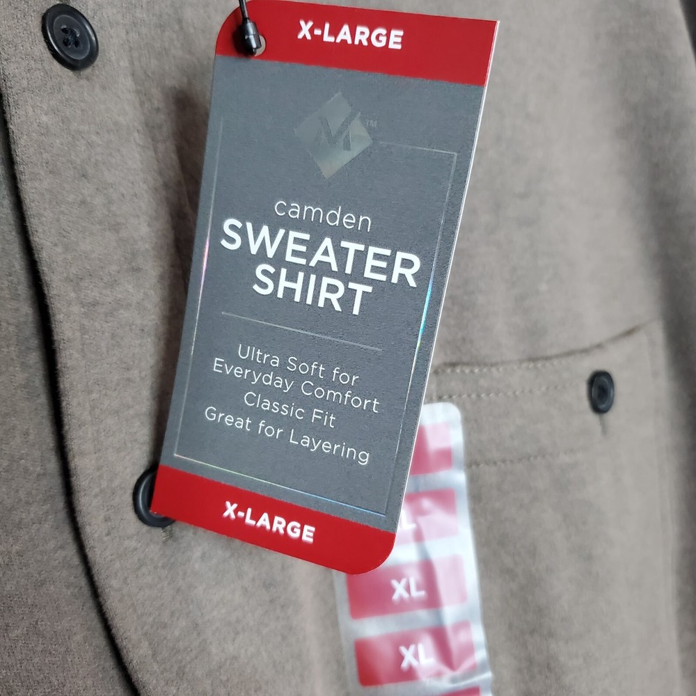 Member's Mark Men's Camden Brown Button Front Knit Sweater Shirt Ultra Soft SZ XL. NWT. Measurements: Pit to Pit 24", Back Length 30", and Arm 26". Ships USPS Ground Advantage. J8 15