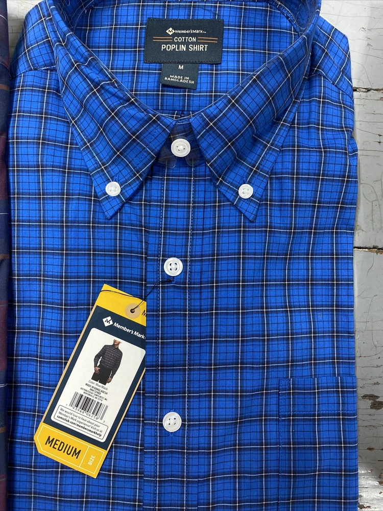 Members Mark Men's Cotton Poplin Shirt Assorted sizes and 3 colors to choose from Checked pattern. Button down collar. Button at cuffs. Long Sleeve. Pocket on chest. 100% cotton. Machine washable. Brand new with tags. Please view pictures for best description. See pic with tag for color choice. Thank You for looking! *shipping fee valid for lower 48 states only.. please contact me for shipping quotes outside the lower 48 states.* *please be aware that some colors may look slightly different in pictures due to lighting*