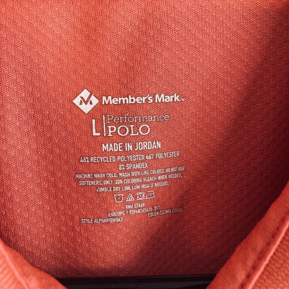 Members Mark Men's Pink Performance Polo Golf Shirt Size L, Peach This shirt is in good condition.