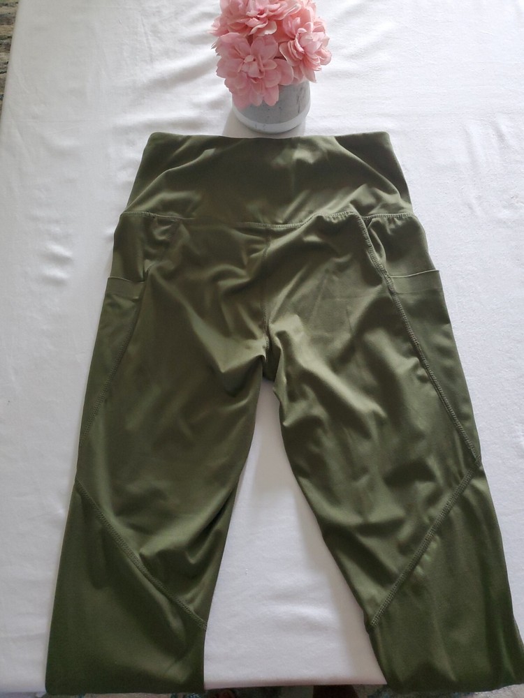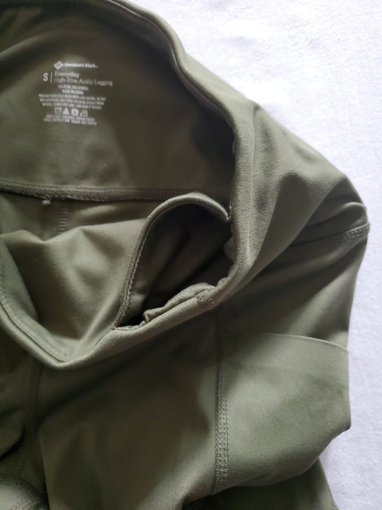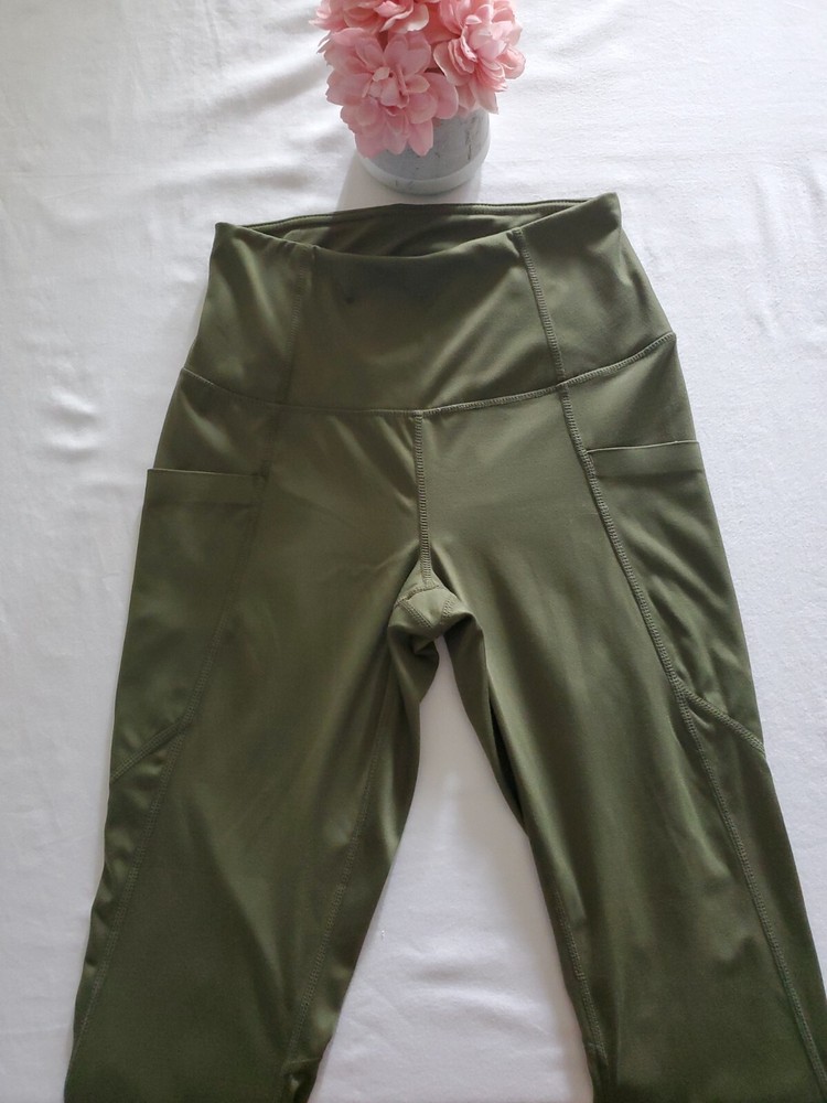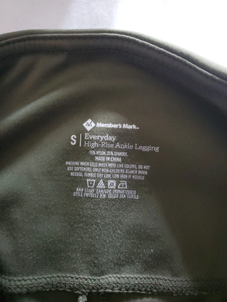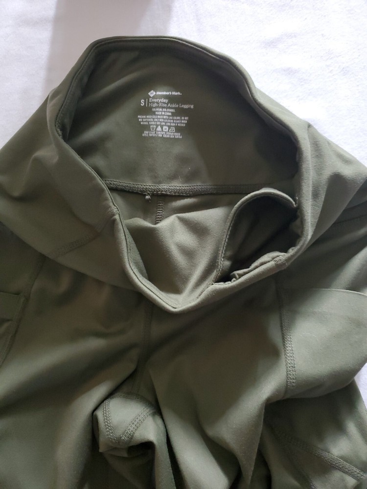 Upgrade your activewear with this pair of olive green leggings from Member's Mark. The pull-on closure makes it easy to wear, and the slim fit style flatters your figure. The blended fabric of nylon and spandex ensures comfort while you are working out or on a walk. These ankle-length leggings are designed for women and fit regular size. The compression area is around the leg, and the fabric type is blended. The leggings come with features like moisture-wicking, breathability, and comfort, making them perfect for gym and training, walking, and running or jogging. Pre-owned, excellent condition.