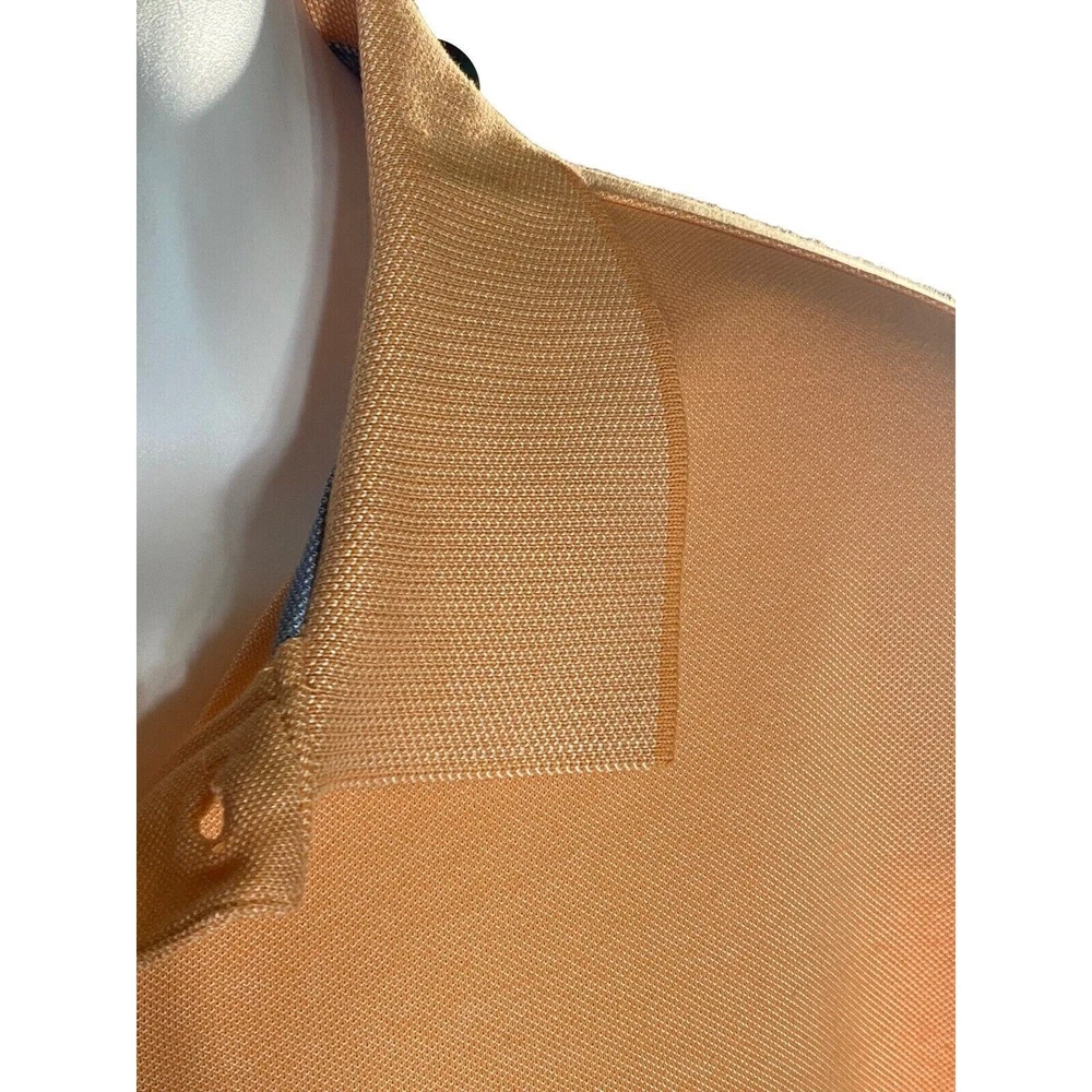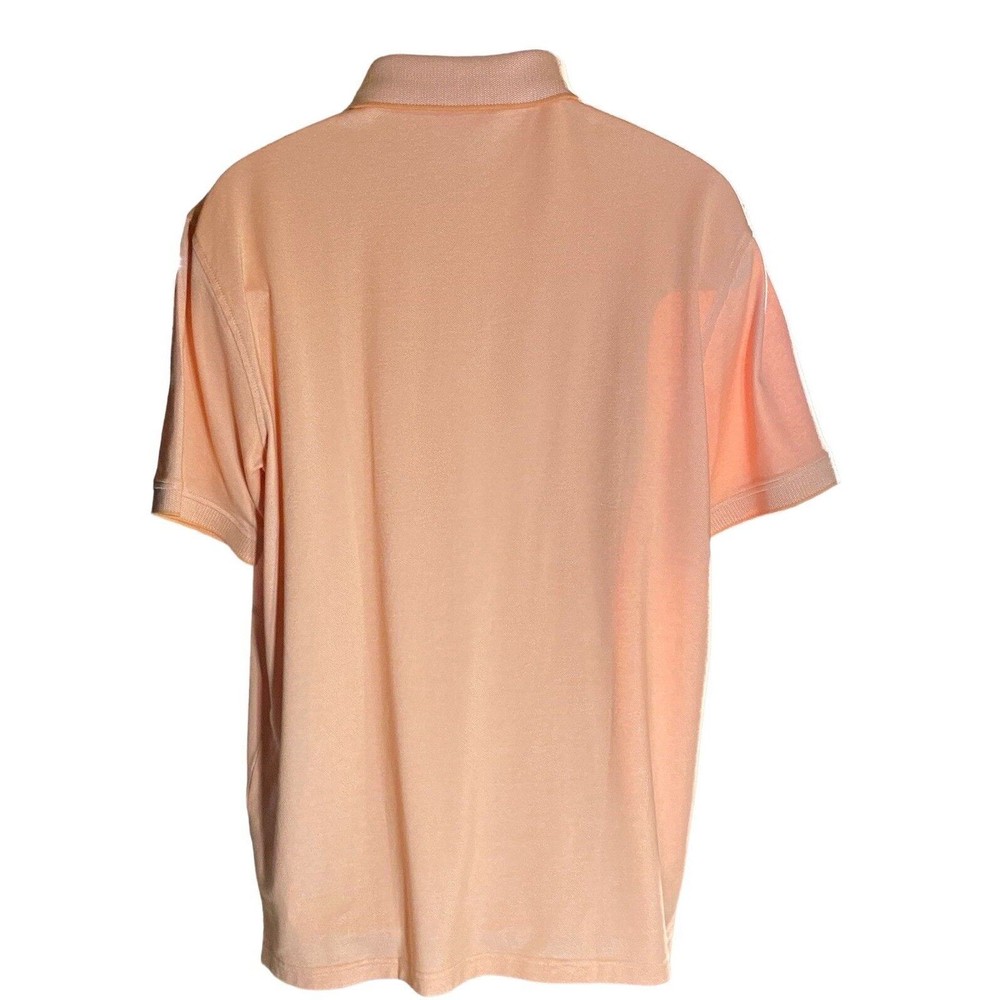 This polo is super comfortable and fits perfectly—great for golf or casual wear. The peach color is fresh, and the stretch fabric moves with you. No signs of wear, just a clean, crisp look. Love the textured collar details!
