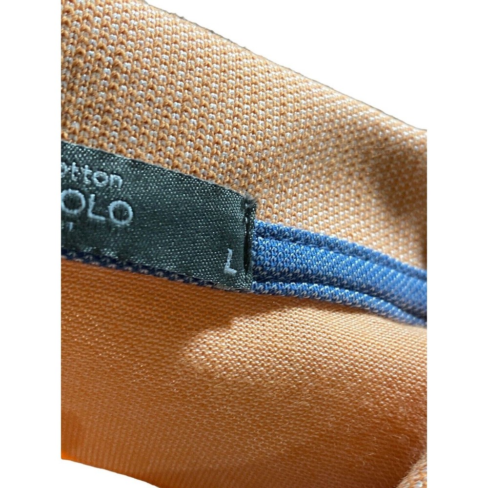 * WHAT IT IS: Members Mark Mens L Pique Polo Collar Shirt Peach Short Sleeve Stretch. Polo golf shirt with a textured collar and cuffs. Easy Cotton Blend machine care. Wear with Trousers for a nice dress casual work wear. Pair with Jeans for a casual night out. * CONDITION: Excellent condition. No holes or pulls. No fraying. No missing buttons. No stains. Not stretched or shrunk. Cleaned per Manufactures recommendations. * MEASUREMENTS: Under Arms: 23.5 inches Length: 30.5 inches