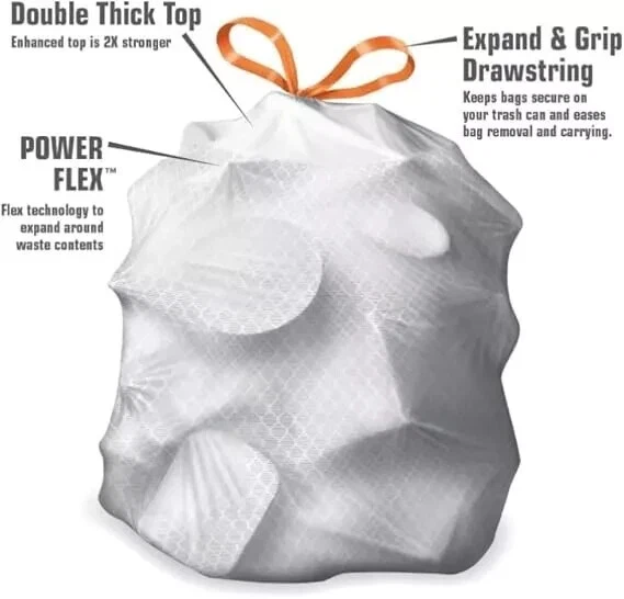 About this item: 200-count box of 13-gallon tall kitchen bags The patent-pending, double-thick top multiplies the strength of the top five inches of the bag providing an extra measure of security and preventing finger punctures during bag removal