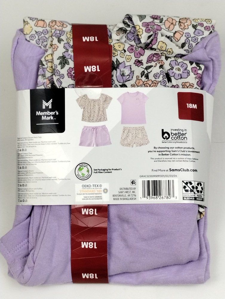 Members Mark 4 Piece Playwear Set Size 18 Months, Purple & White Floral Pattern, New Includes 2 shirts and 2 shorts, mix & match, machine washable, adorable. We want a positive experience for all of our customers. Please read the description thoroughly and review the photos as they are an active part of the description. If you feel anything may be incorrect, please don’t hesitate to contact us at any point. If you have any questions, please feel free to contact us anytime. Please note that the color of the item in the pictures may vary from the actual item due to camera settings, lighting, and your device’s display among other factors. All items are shipped via economy shipping the next business day after payment is received. All items are stored in a clean, smoke free, and pet free environment. We are happy to combine shipping on items that are purchased on the same day. THANK YOU FOR SHOPPING!!! 2