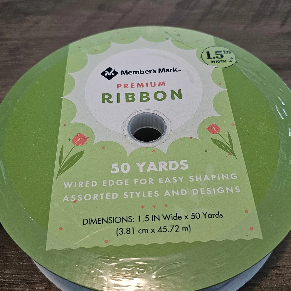 Theme: Easter Format: Ribbon Spool Ribbon Type: Wire-Edged Design: Printed Color: Blue Model: Spring Brand: Member's Mark Width: 1 1/2" Country of Origin: China Features: Reflective Handmade: No Unit of Sale: Lot Style: Double-Sided