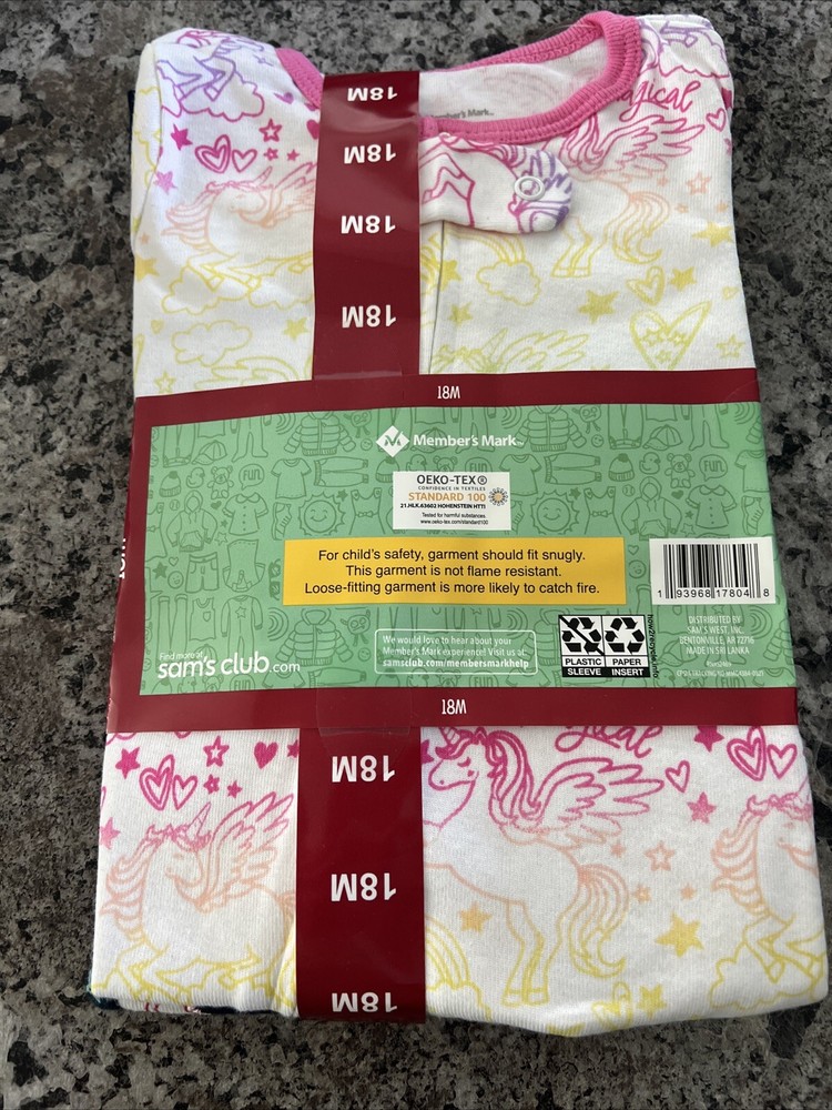 Get your little one ready for bedtime with these Member's Mark favorite pajamas. This 2 pack set is perfect for babies and toddlers aged 18 months. The pajamas come in a fun multicolor design and feature a convenient zip closure. Made from high-quality materials, these one-piece pajamas are comfortable and cozy, ensuring a peaceful night's sleep for your little one. The pajamas are available in size 6-9 months and are perfect for both baby boys and girls. Shop now and add these cute and practical pajamas to your baby's sleepwear collection.