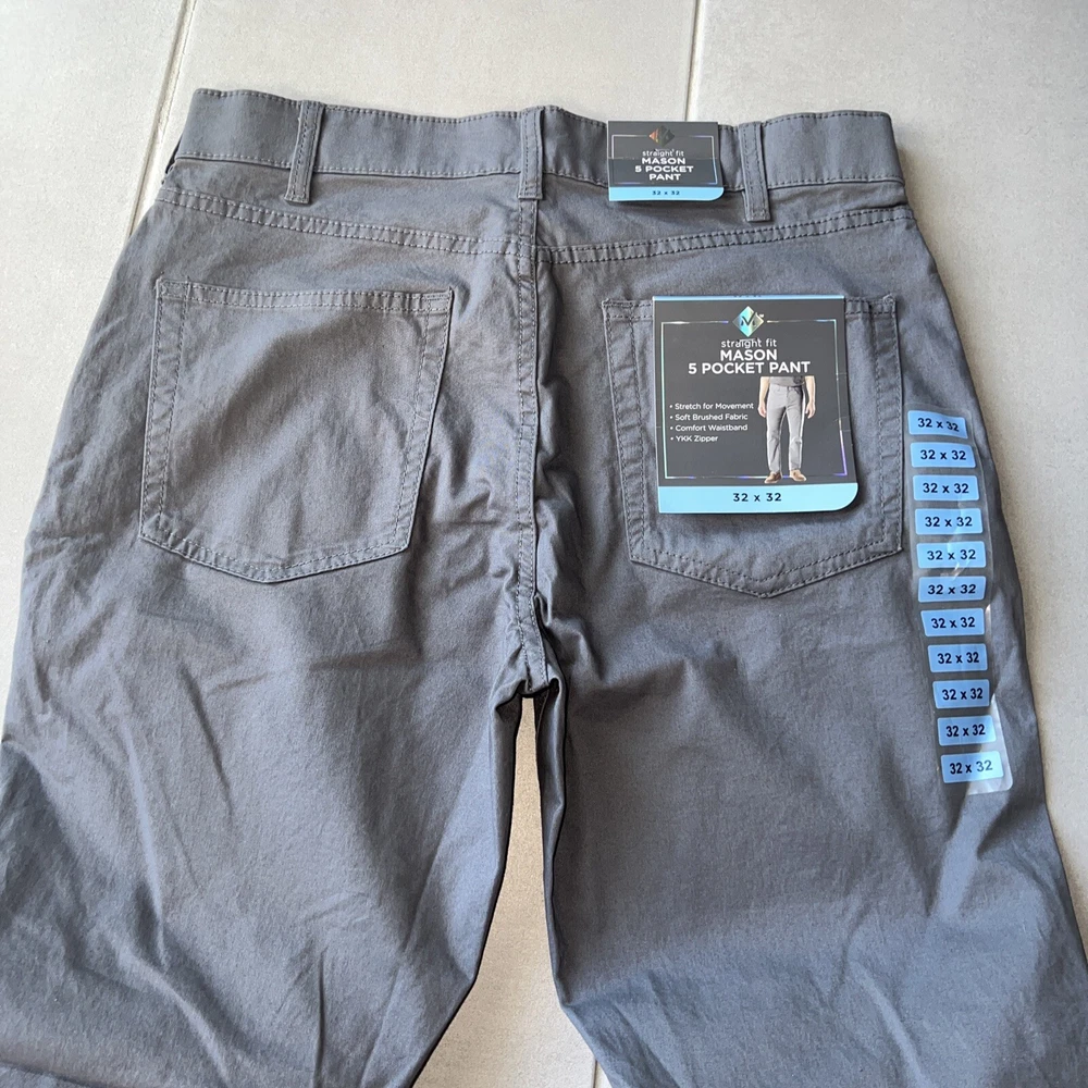 Members mark straight mens mason 5 pocket pant size 32 x 32 NWT.