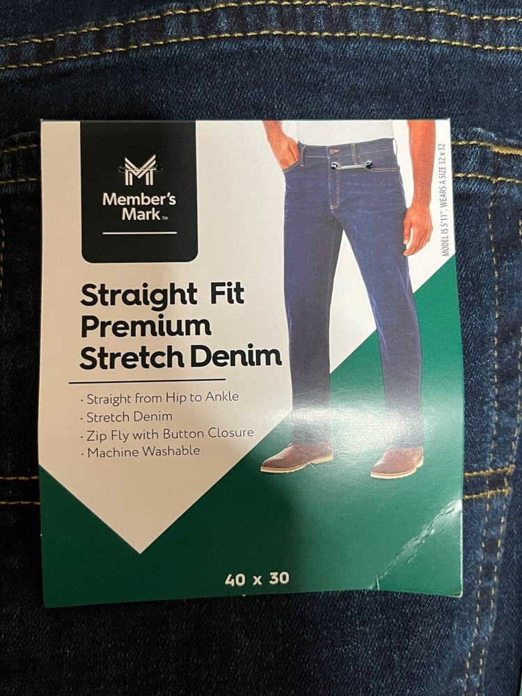 These jeans offer a comfortable fit with their stretch denim material, designed for mobility and ease. The straight fit provides a classic silhouette that complements various styles. • Straight fit design • Premium stretch denim • Zip fly with button closure • Machine washable • 5-pocket style