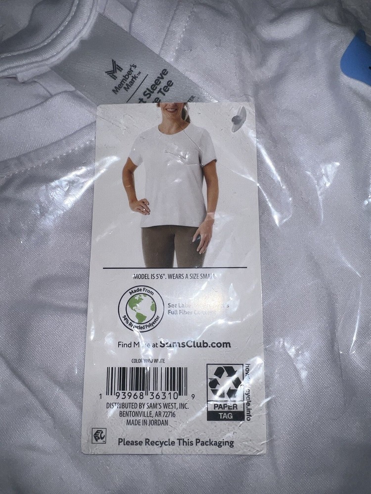 Size: L Type: T-Shirt Brand: Member's Mark Color: White Occasion: Activewear Department: Women Size Type: Regular Sleeve Length: Short Sleeve