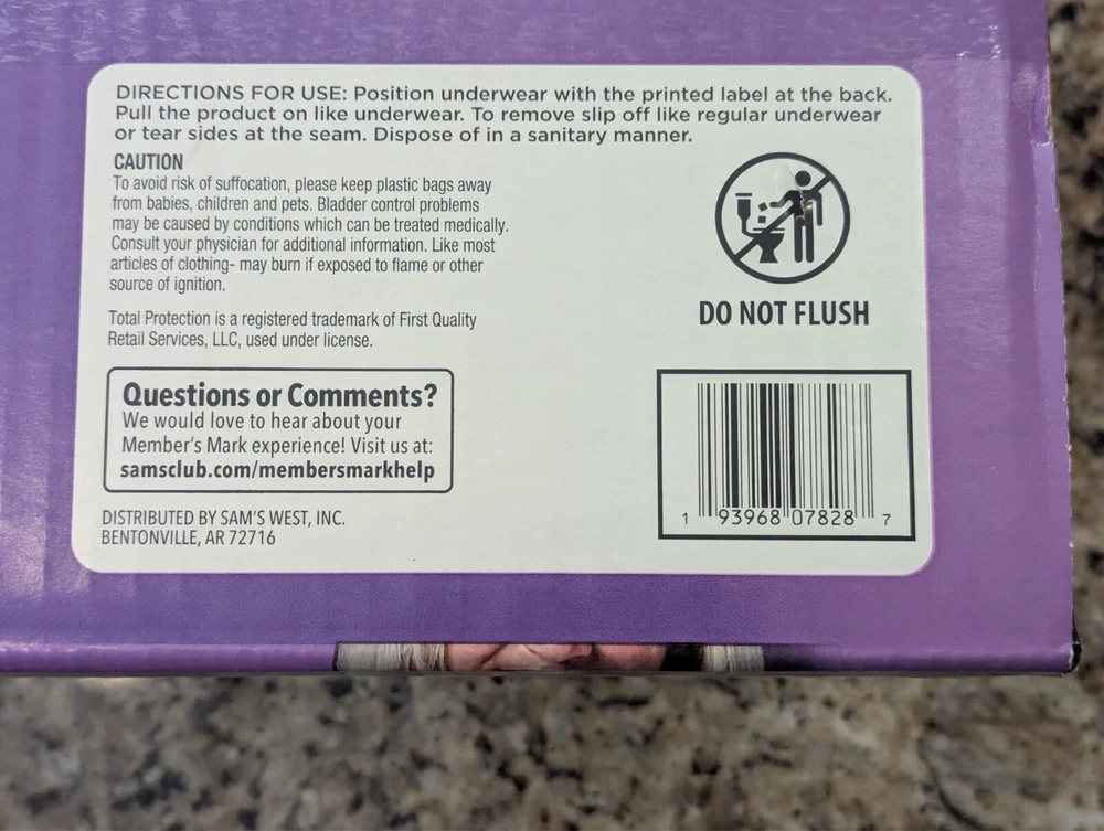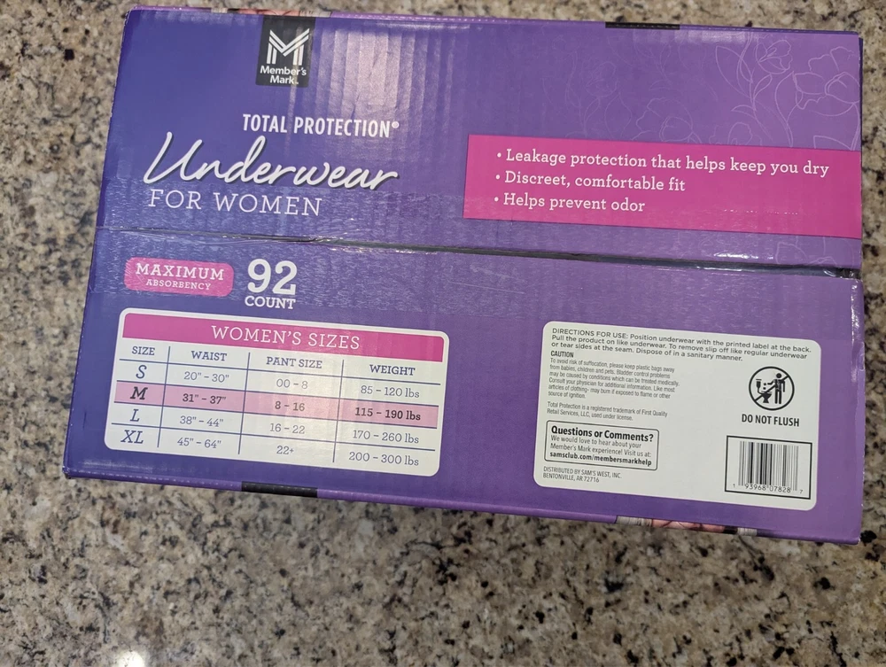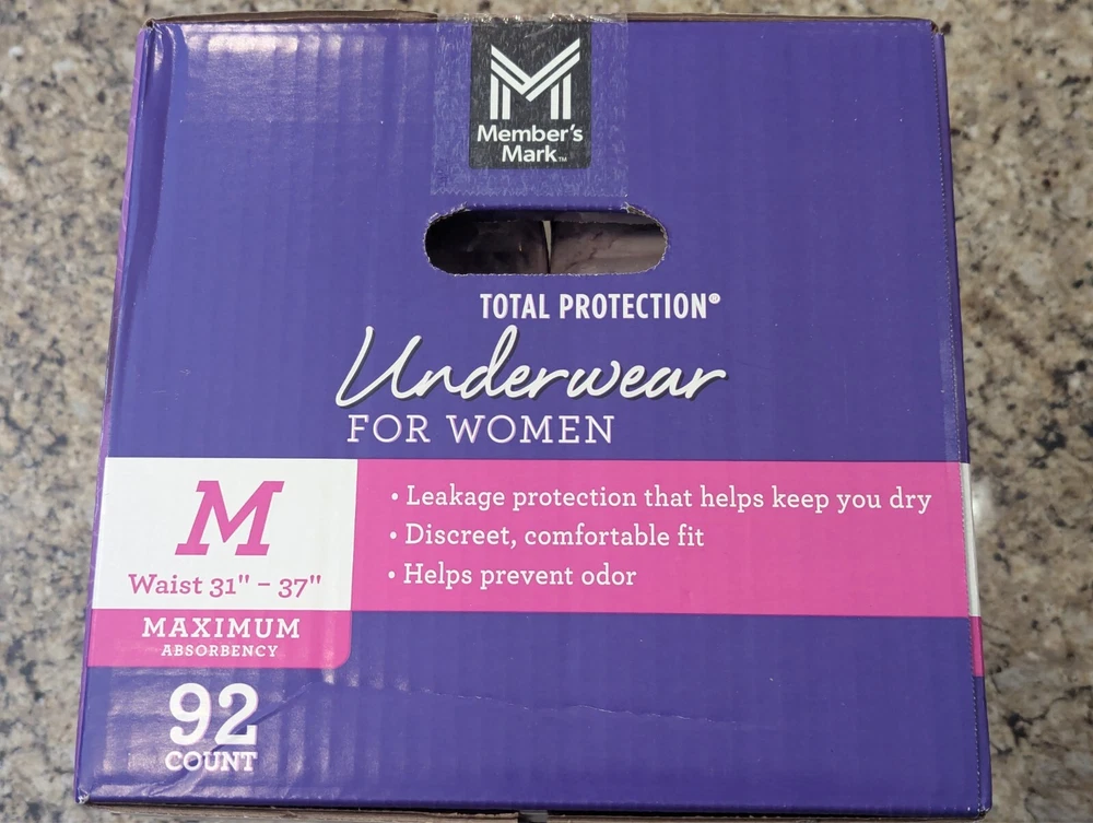 Members Mark Total Protection Underwear for Women 92 count size M 31-37"