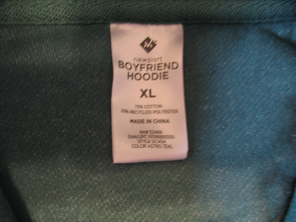 Brand/Item: Member's Mark/Hoodie Size: XL Description: Teal green color, brushed fleece inside, Newport Boyfriend Hoodie style, heavyweight Condition: No stains, no holes and minimal wash wear Tape measure not included.