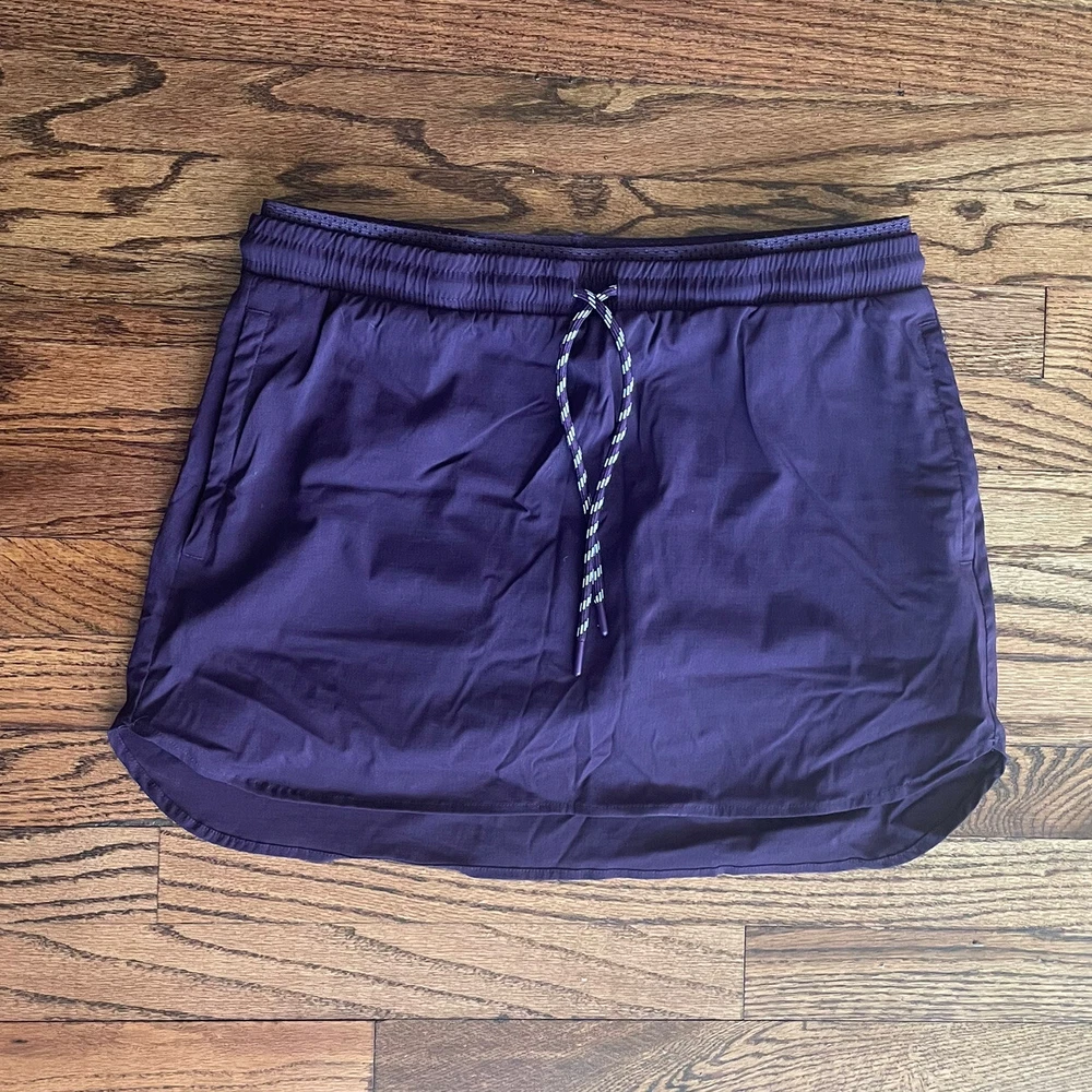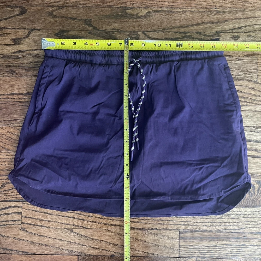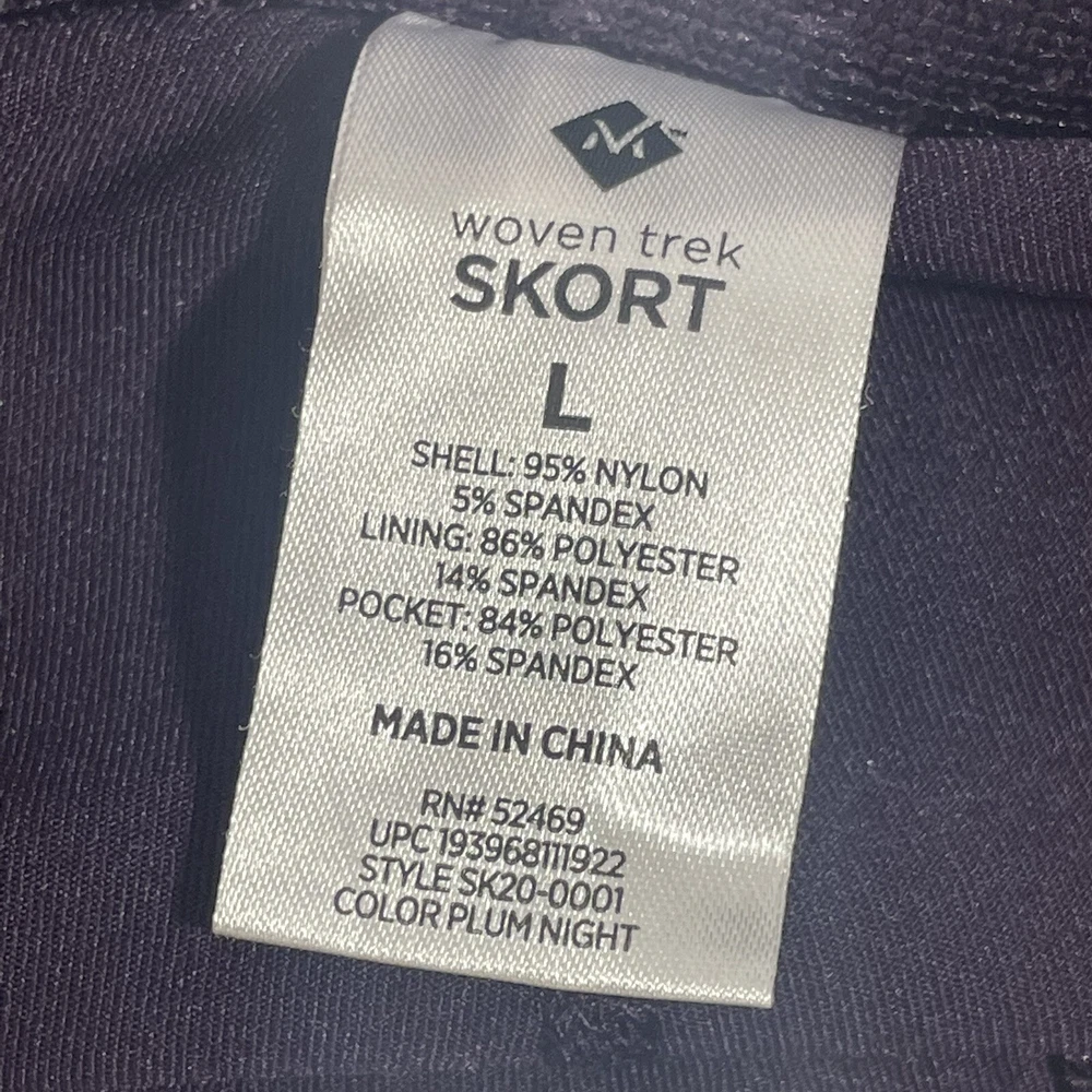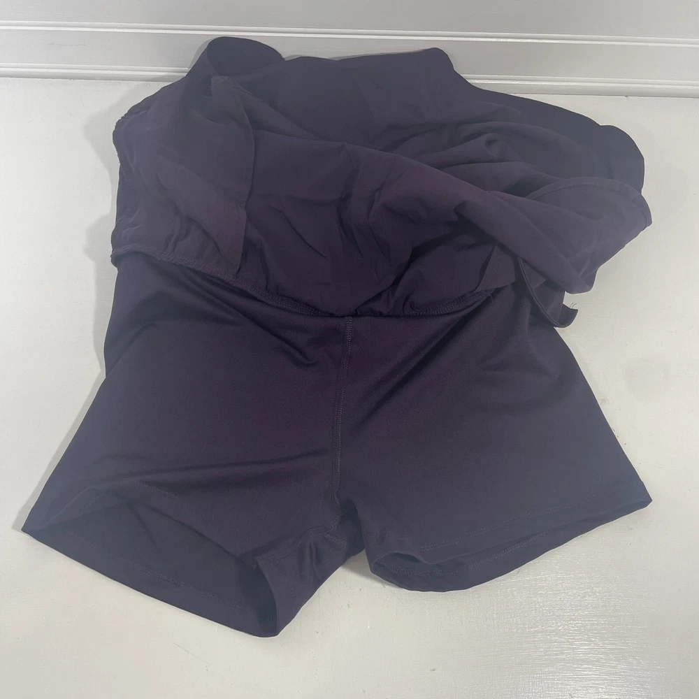 Members Mark woven trek women’s skort purple plum night per tag. Size large. 2 front pockets and and shorts Liner. Elastic waist and drawstring. Shell 95 percent nylon and 5 percent spandex. Lining is 86 percent polyester and 14 percent spandex. Skorts were used normal signs of wear but overall great condition no rips stains or holes. Measured the best I could waist is 32 in, total length is 15.5 in. Style#SK20-0001. RN#52469. Made in 2021. See pics for measurements and condition any questions please ask.
