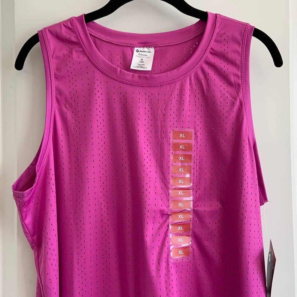 Members Mark XL Everyday Perforated ActiveTank New with tags! Performance stretch Moisture wicking Semi-fitted High low hem with side slits Color: Orchid Approximate Measurements Pit to Pit: 20.75" Length: 24.5" Smoke-free, pet-free home Please let me know if you have any questions!