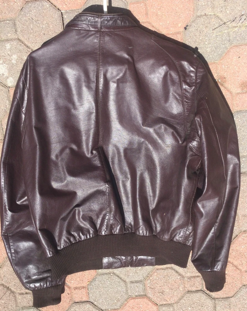 Yes I would like to “Offer Up” to you my Bomber Jacket..Seems as nothing sells on other sites so we know where the real action is at …The Bay….I lived at 1036 Jones St. San Francisco 1 year 1968 and enjoyed every minute of it …worked 1 day…It was a walking city of sights and good smells AND the FOOD…It was a gArden of Eatin to say the least…everyone arose in the mornings to read what Herb Caen had to say in the SF Cronicle…Anyway I am offering my SF Bomber Jacket in honor of those who believe making money in bombs as may they go to Hattie or some other planet…This vintage jacket has a lining 49% acetate and 51% nylon and was put together in Korea…Two fine leather lined inside pockets…The one minor flaw is the stitching on the left shoulder has opened up a bit and seems to be a non spreading menace….Sleeve length 20”…across shoulders 18” …armpit to armpit length 18”…. from bottom of collar downward 26” Be sure of fit as no return for missed sizing…