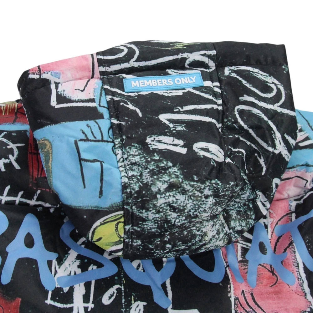 Members Only Jean-Michel Basquiat Jacket Medium Black Hooded Puffer Quilted BNWT Mens Medium Armpit - Armpit = 24 inches Length (back, bottom of hood to hem) = 28 inches Shoulder - Shoulder = 20.5 inches Shoulder - Cuff = 26 inches Armpit - Cuff = 19.5 inches Features: Premium construction. Full zip fastening. Adjustable hood. Jean-Michel Basquiat all-over artwork print. Front & internal pockets. Fully lined. Elasticated cuffs & waistline. Quilted lining. Fabric : Shell, lining & filling = 100% Polyester. Colour : Black. Condition : Brand new with tags. There has been a repair along the front (please see picture 4). Free UK postage.