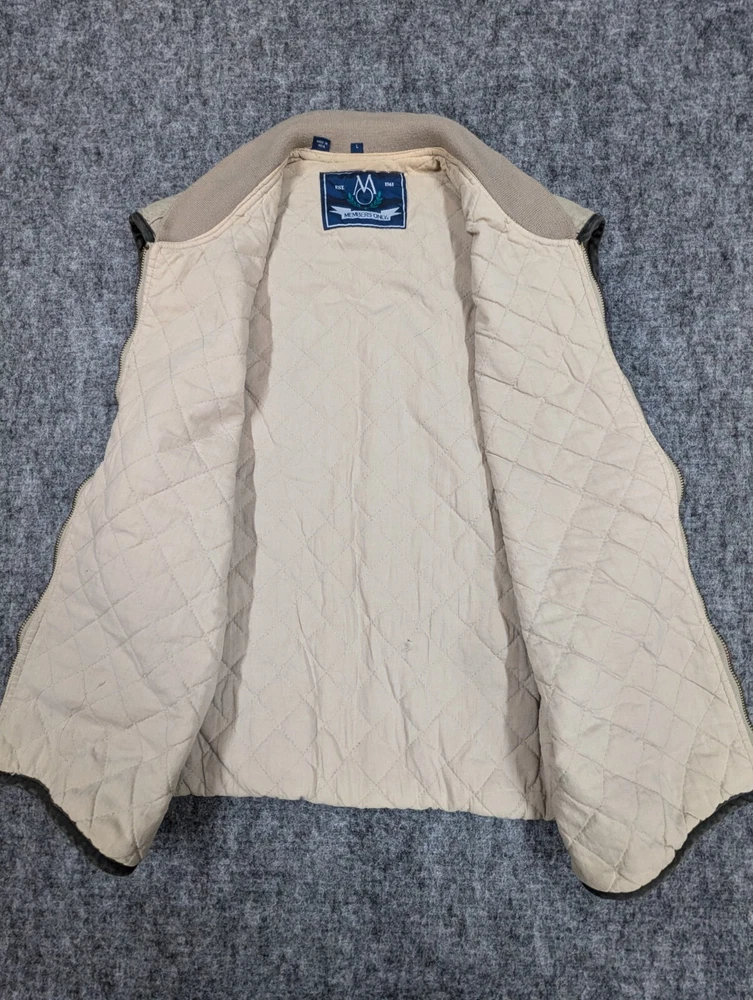 Members Only Vest Sz Large Quilted Lined Full Zip Flaw Note: There are two small spots on the right front pocket. They can be seen in the pictures provided.